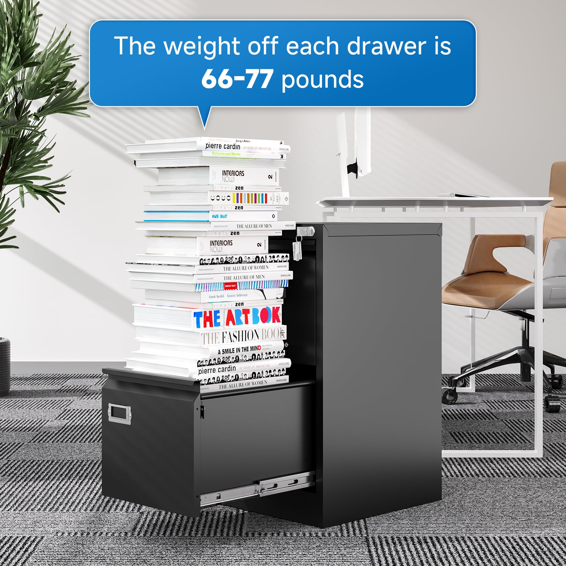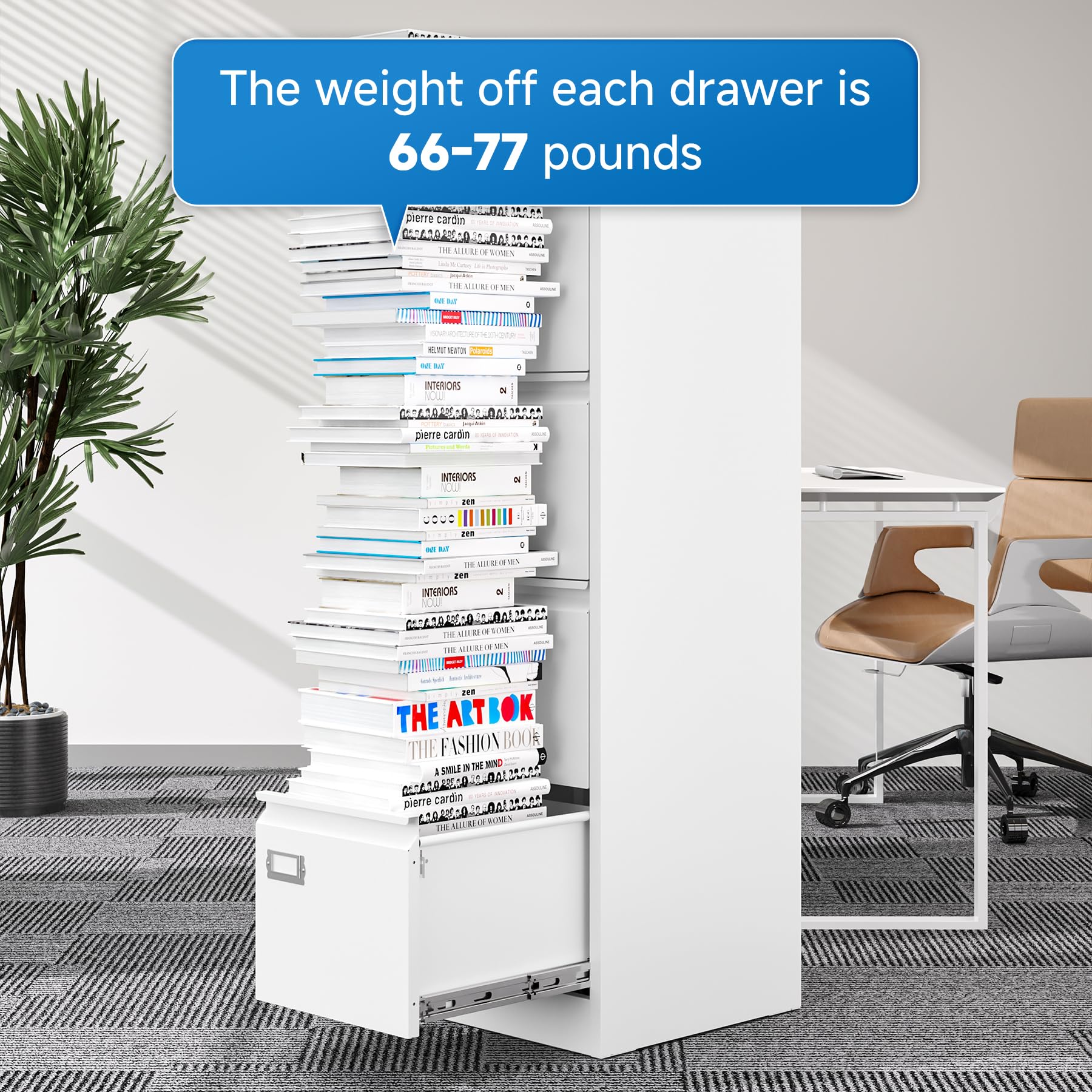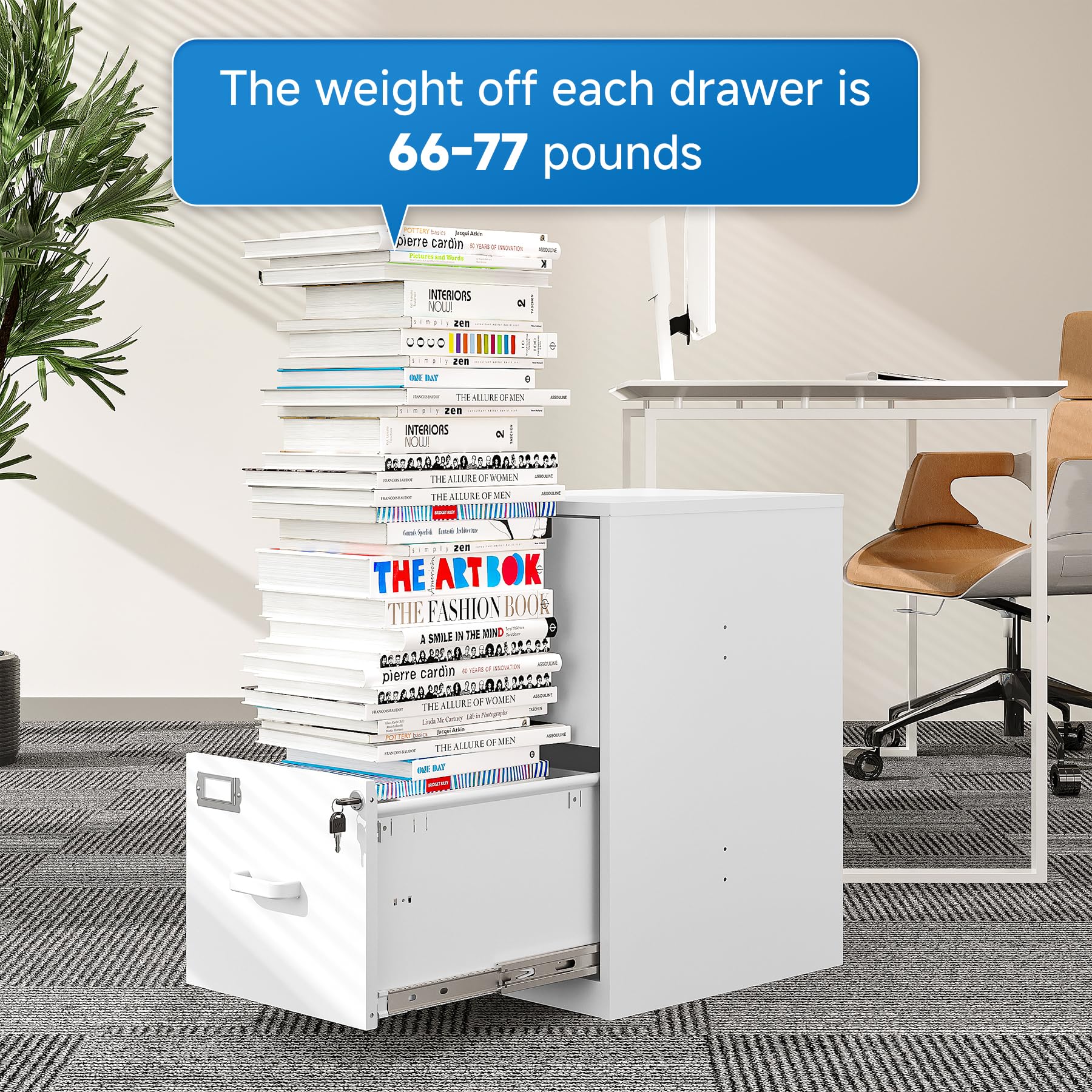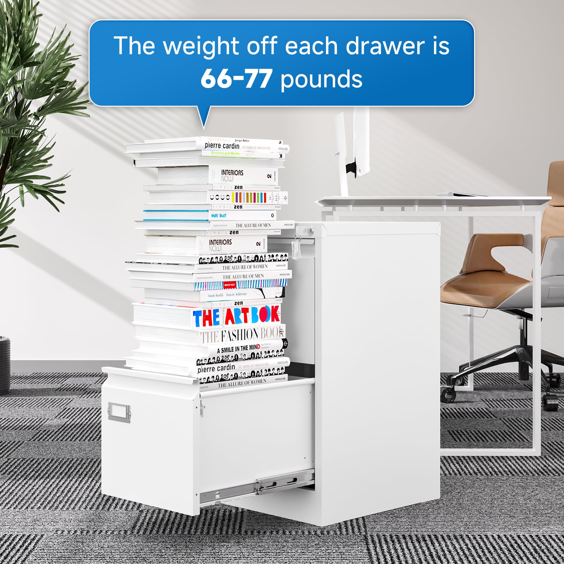 - 【HUMANIZED DESIGN】The steel ball bearing full extension drawer slide is noiseless, will not affect the work of others, and always maintain a quiet environment. The extra-long drawer handle design of the file cabinet makes it more convenient to open the drawer