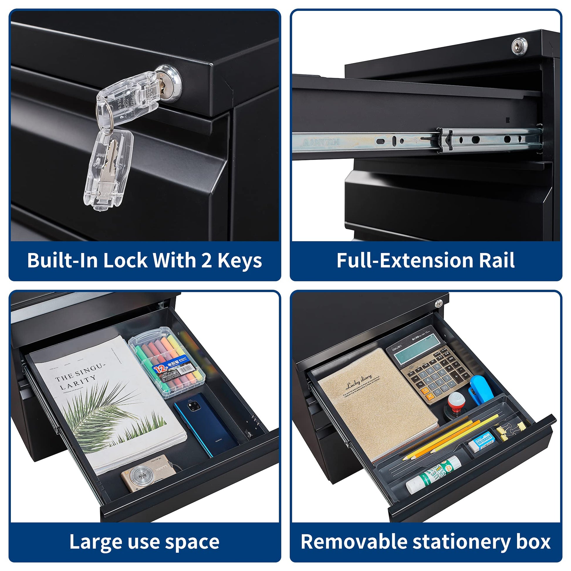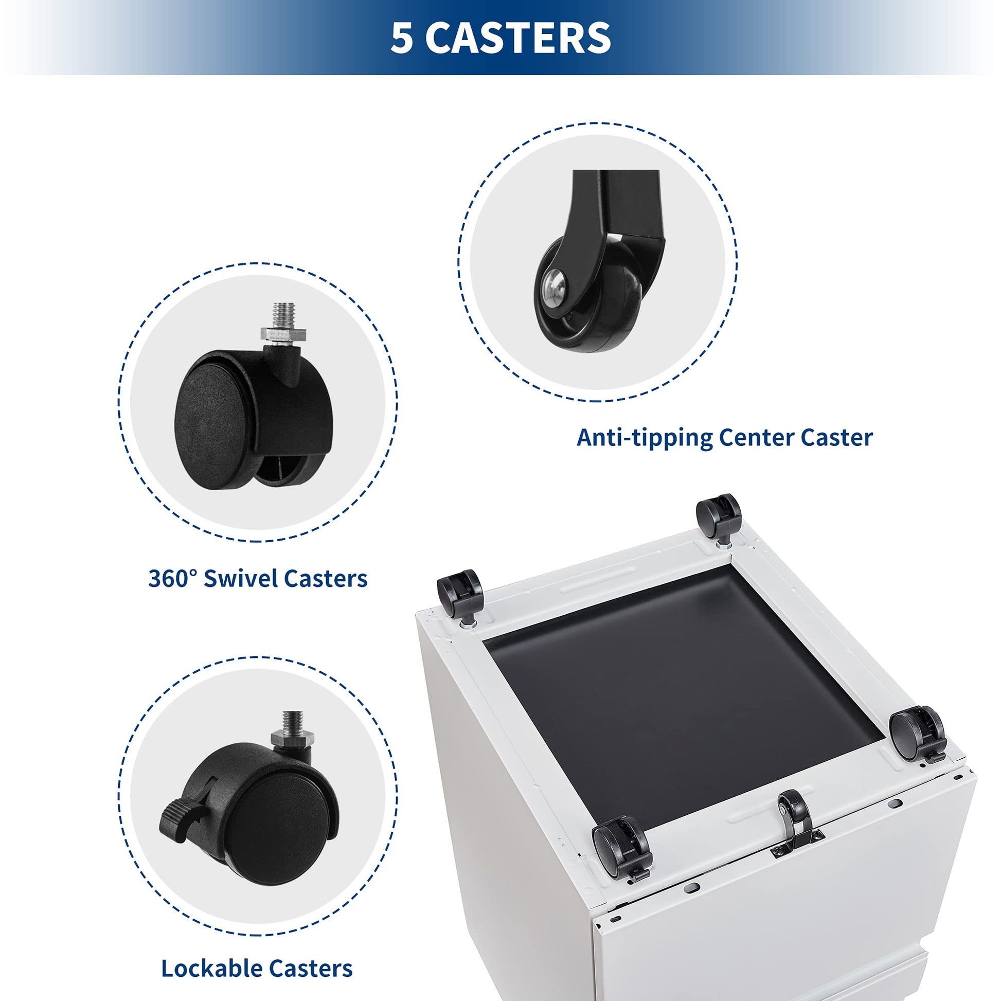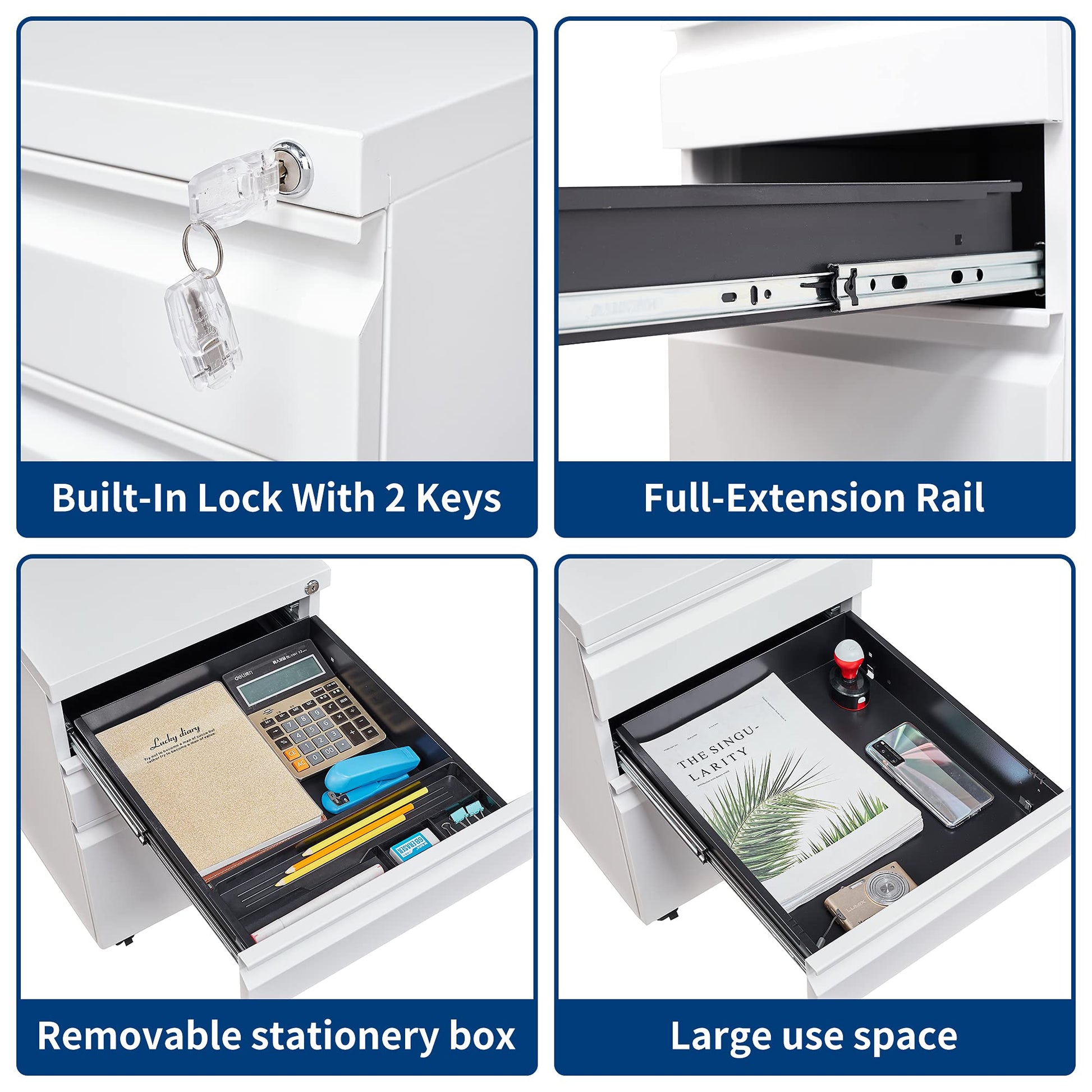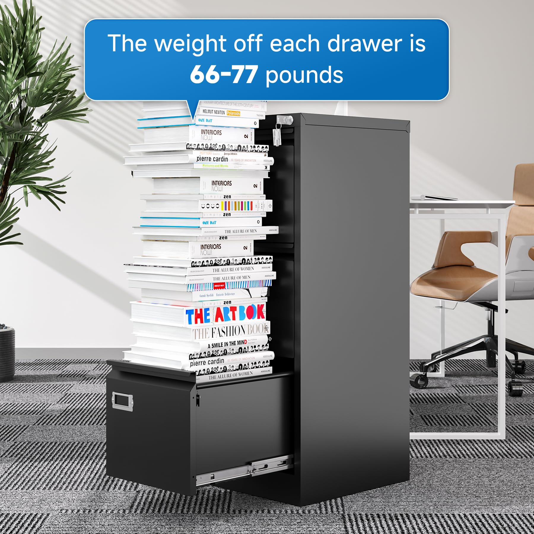 - 【HUMANIZED DESIGN】The steel ball bearing full extension drawer slide is noiseless, will not affect the work of others, and always maintain a quiet environment. The extra-long drawer handle design of the file cabinet makes it more convenient to open the drawer