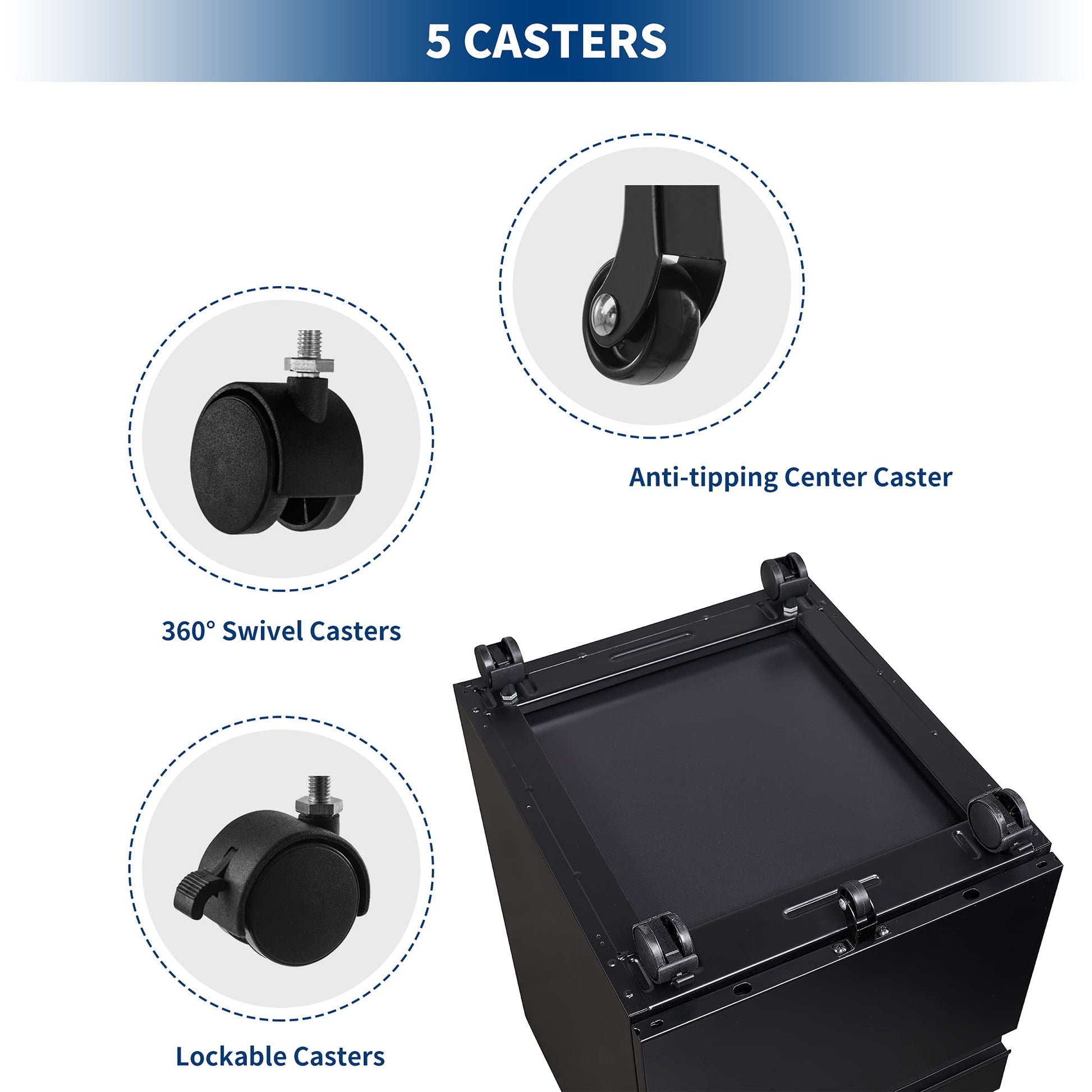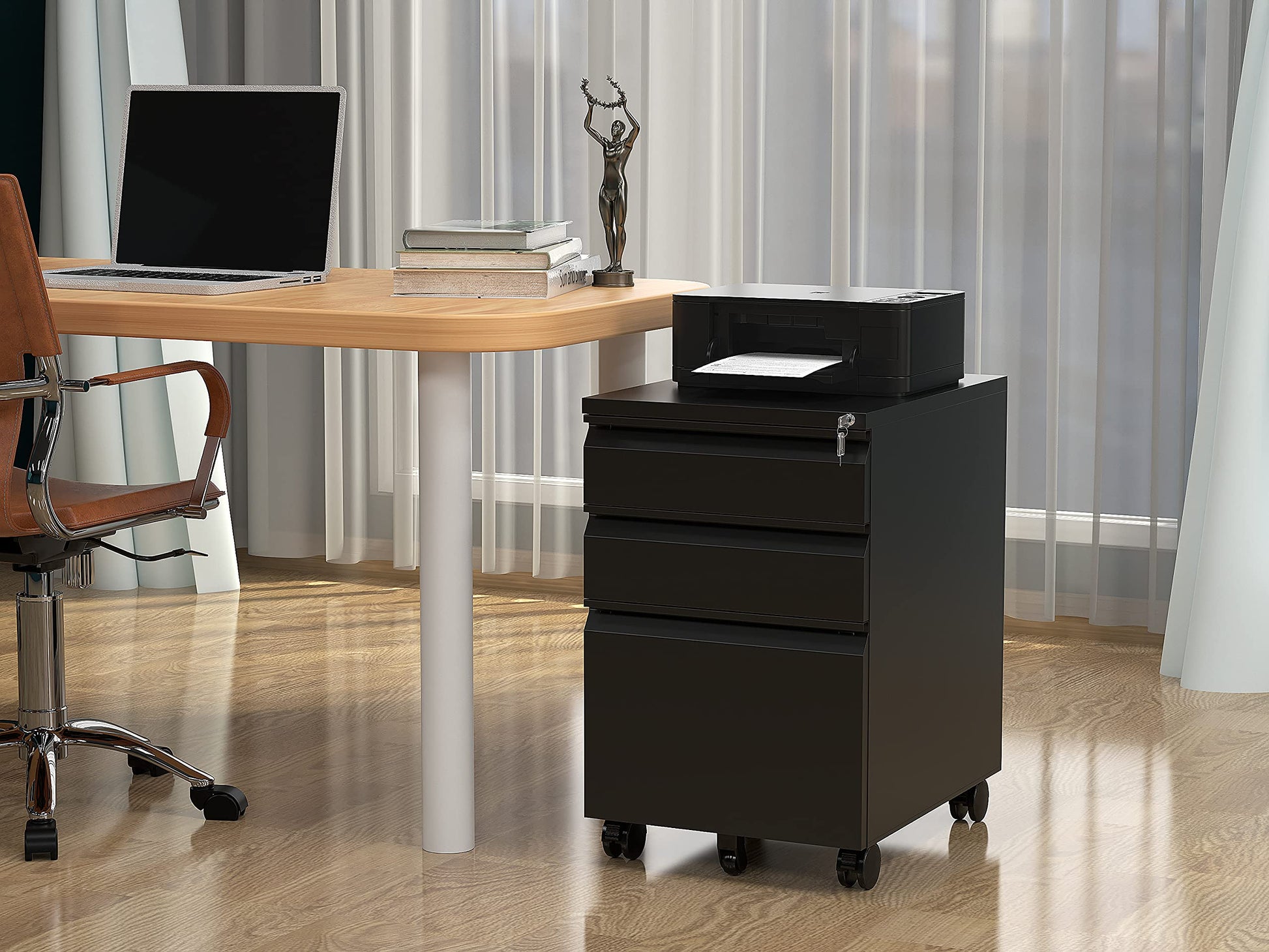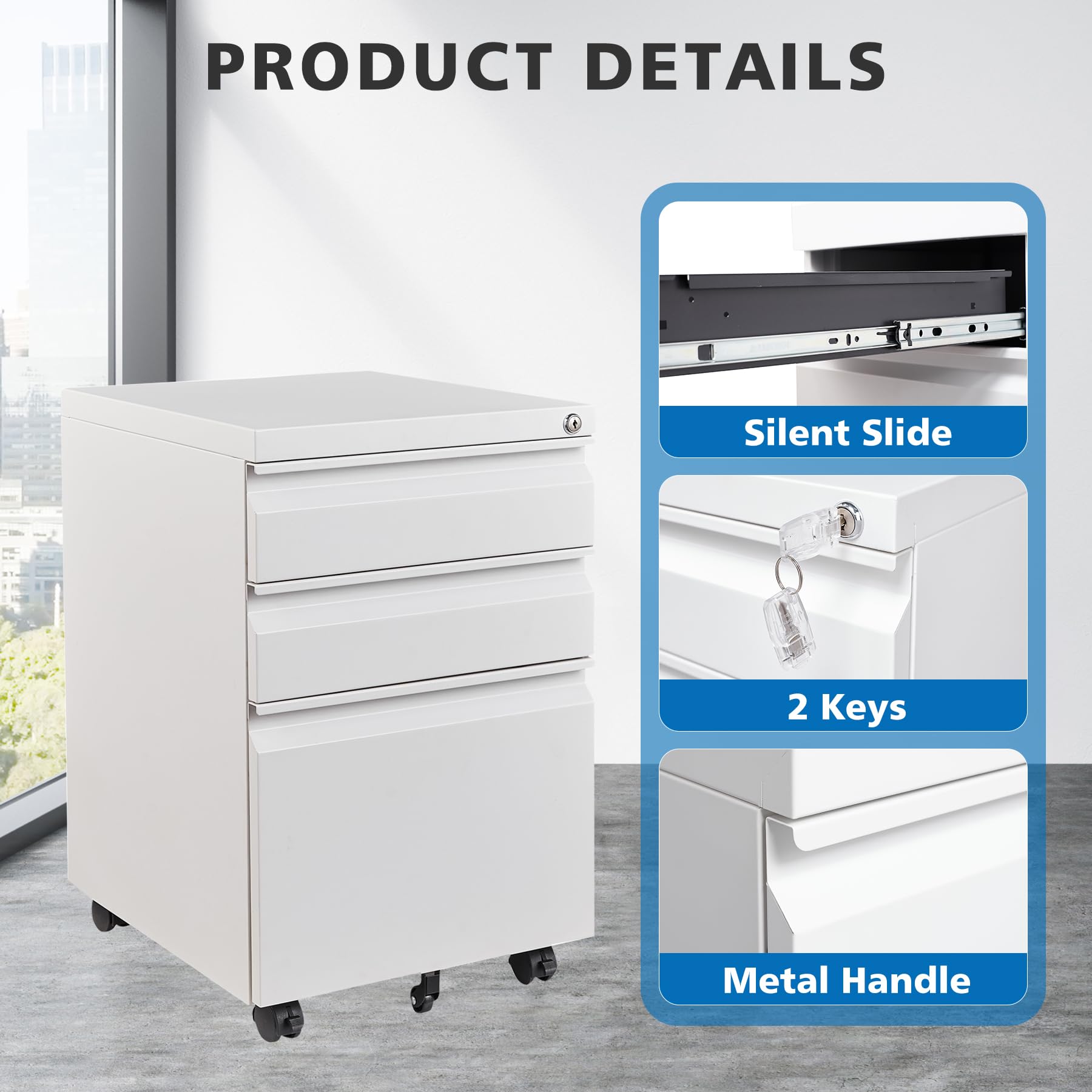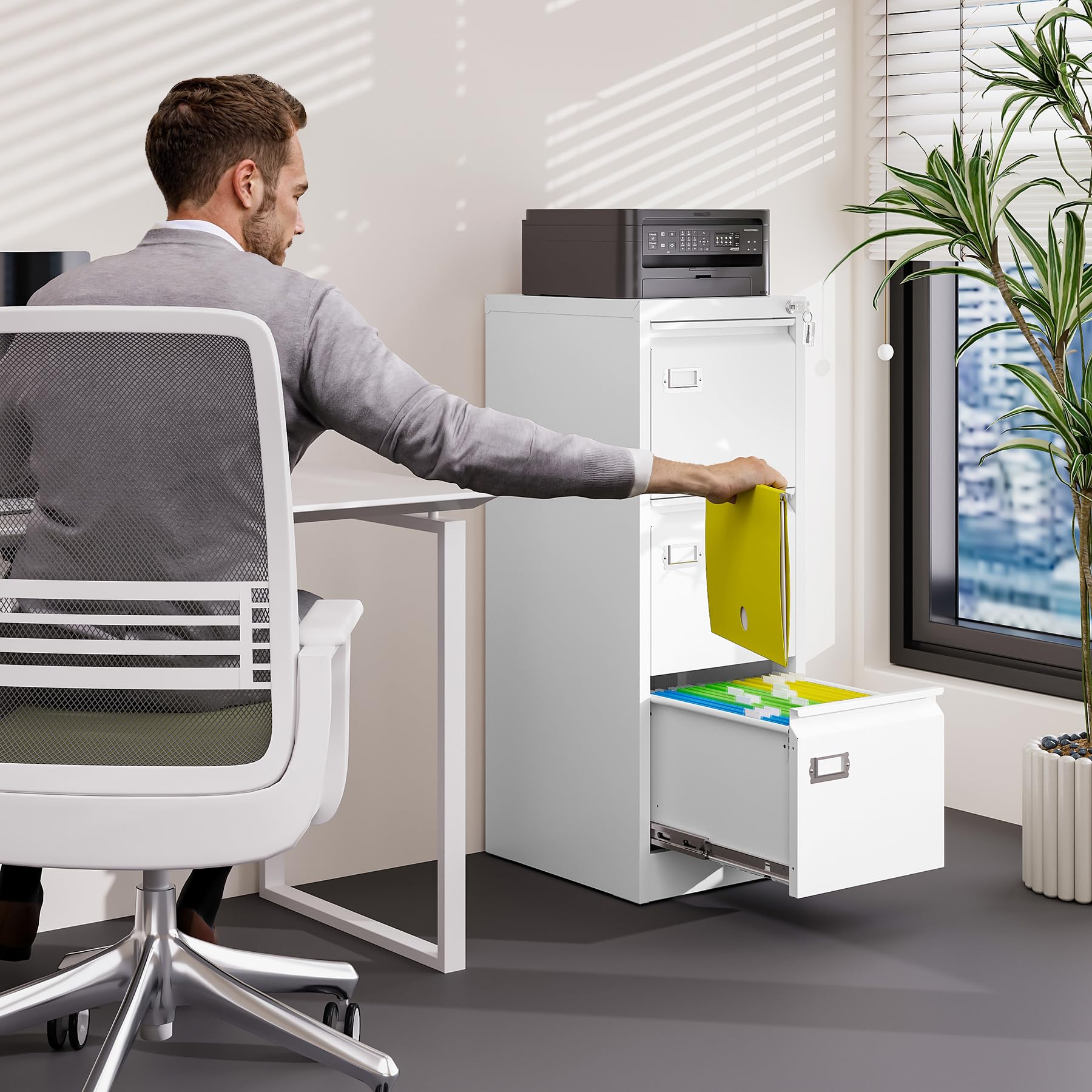 - 【HUMANIZED DESIGN】The steel ball bearing full extension drawer slide is noiseless, will not affect the work of others, and always maintain a quiet environment. The extra-long drawer handle design of the file cabinet makes it more convenient to open the drawer