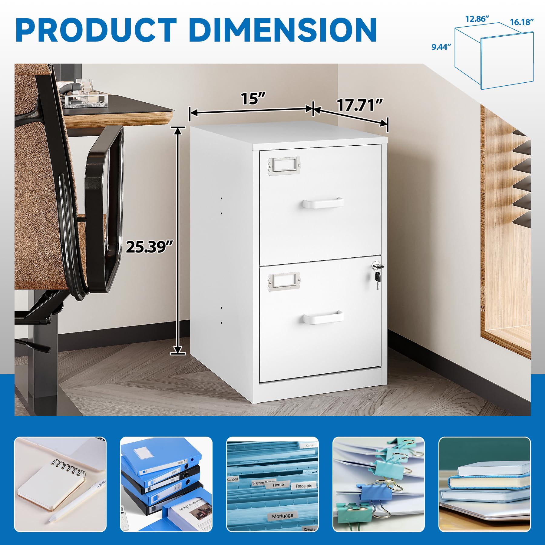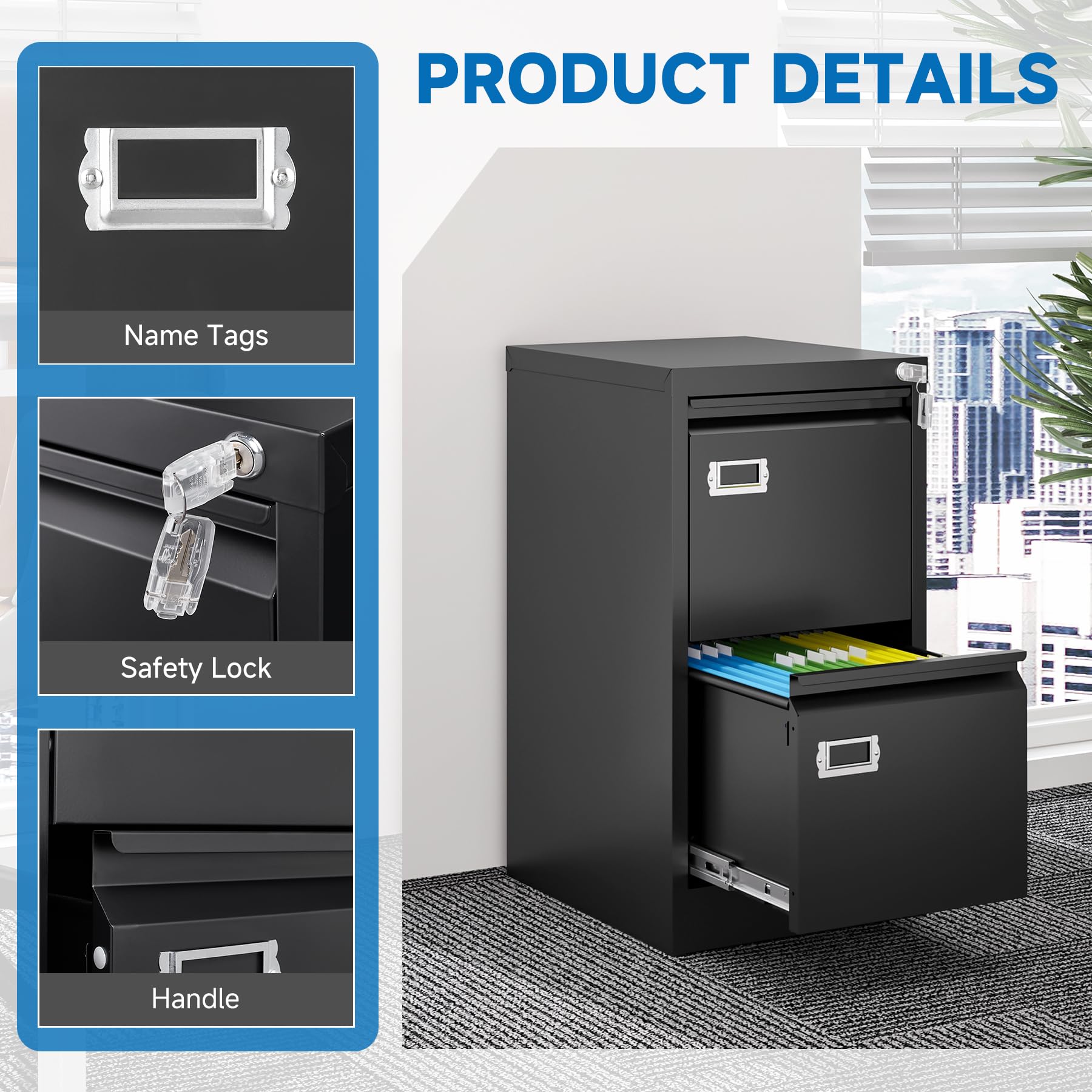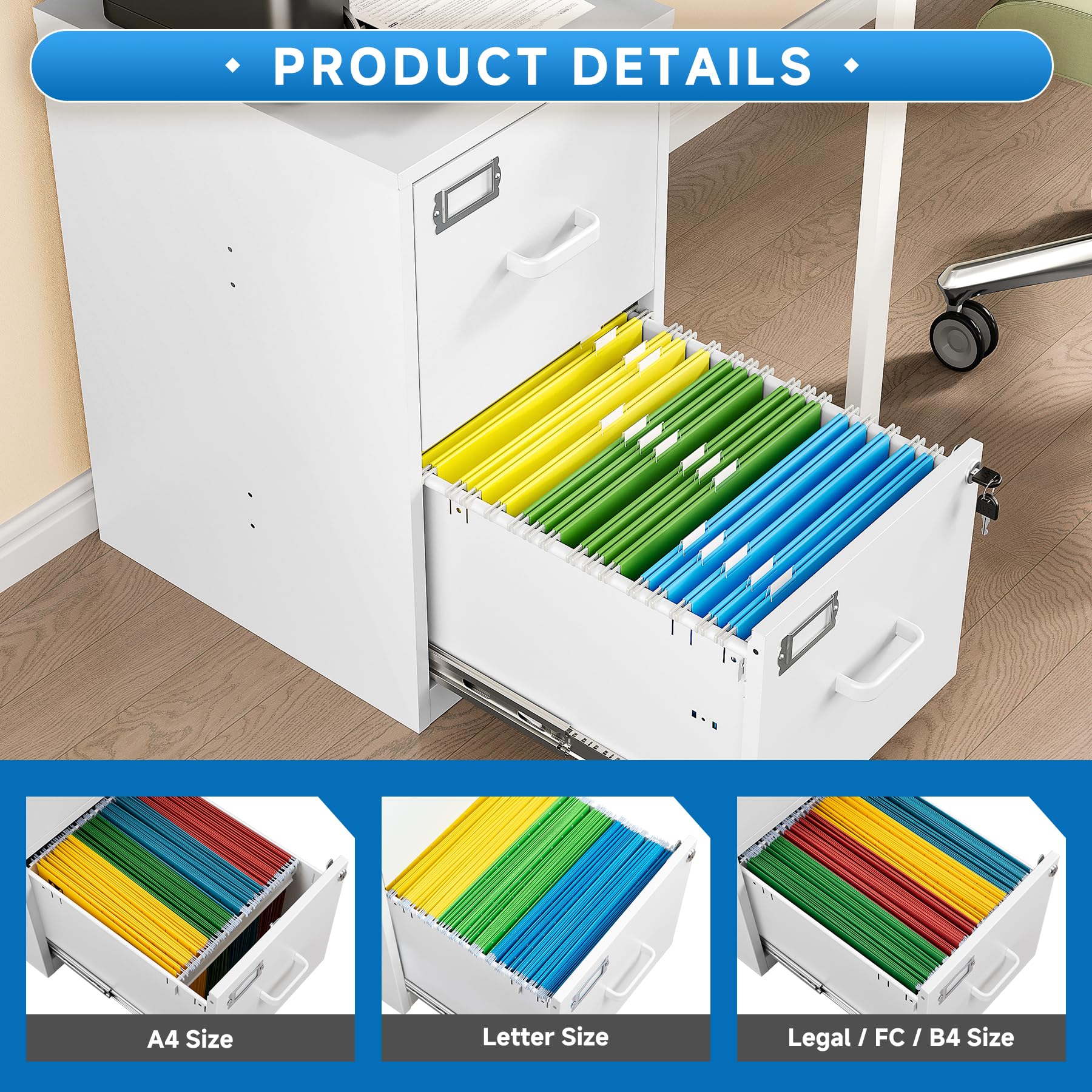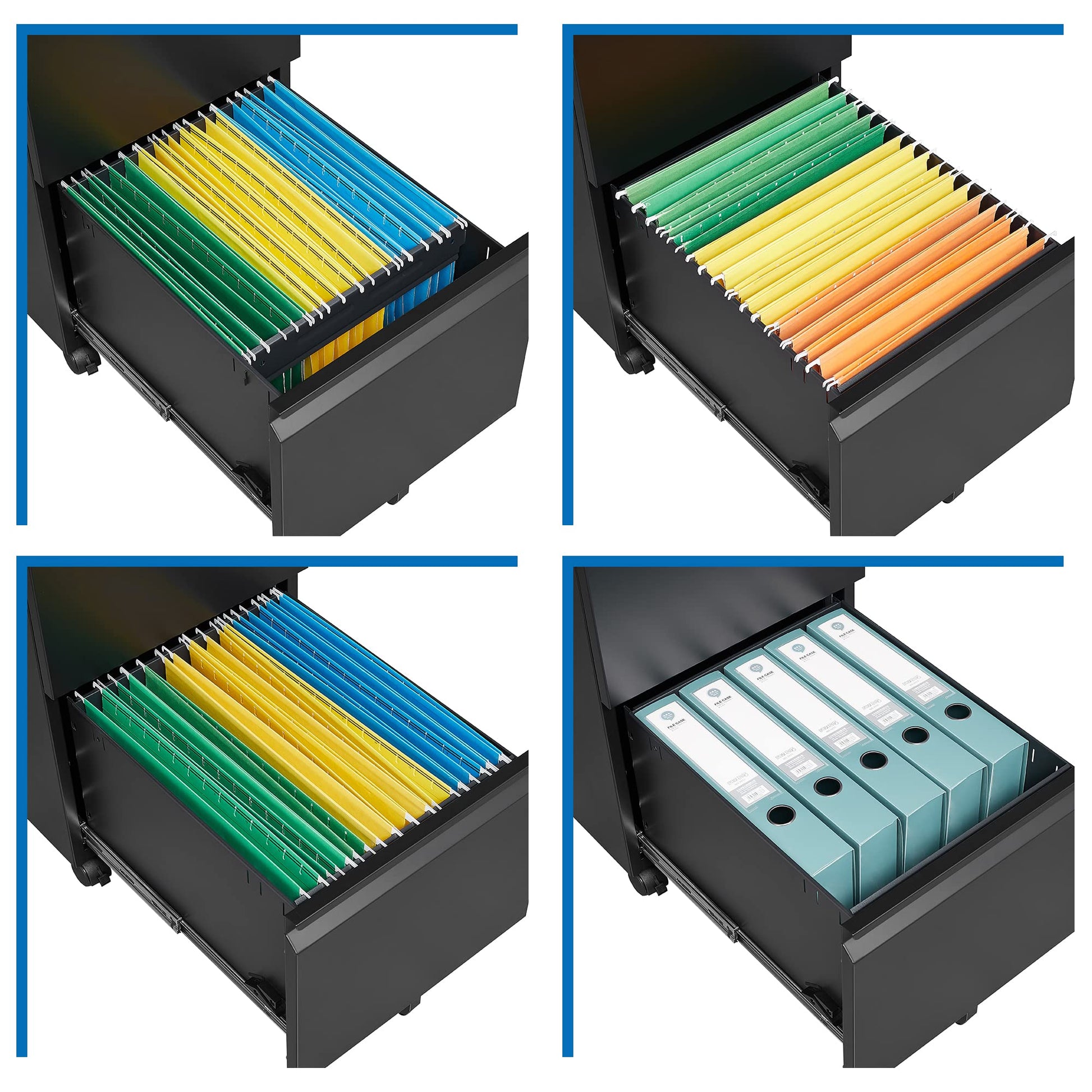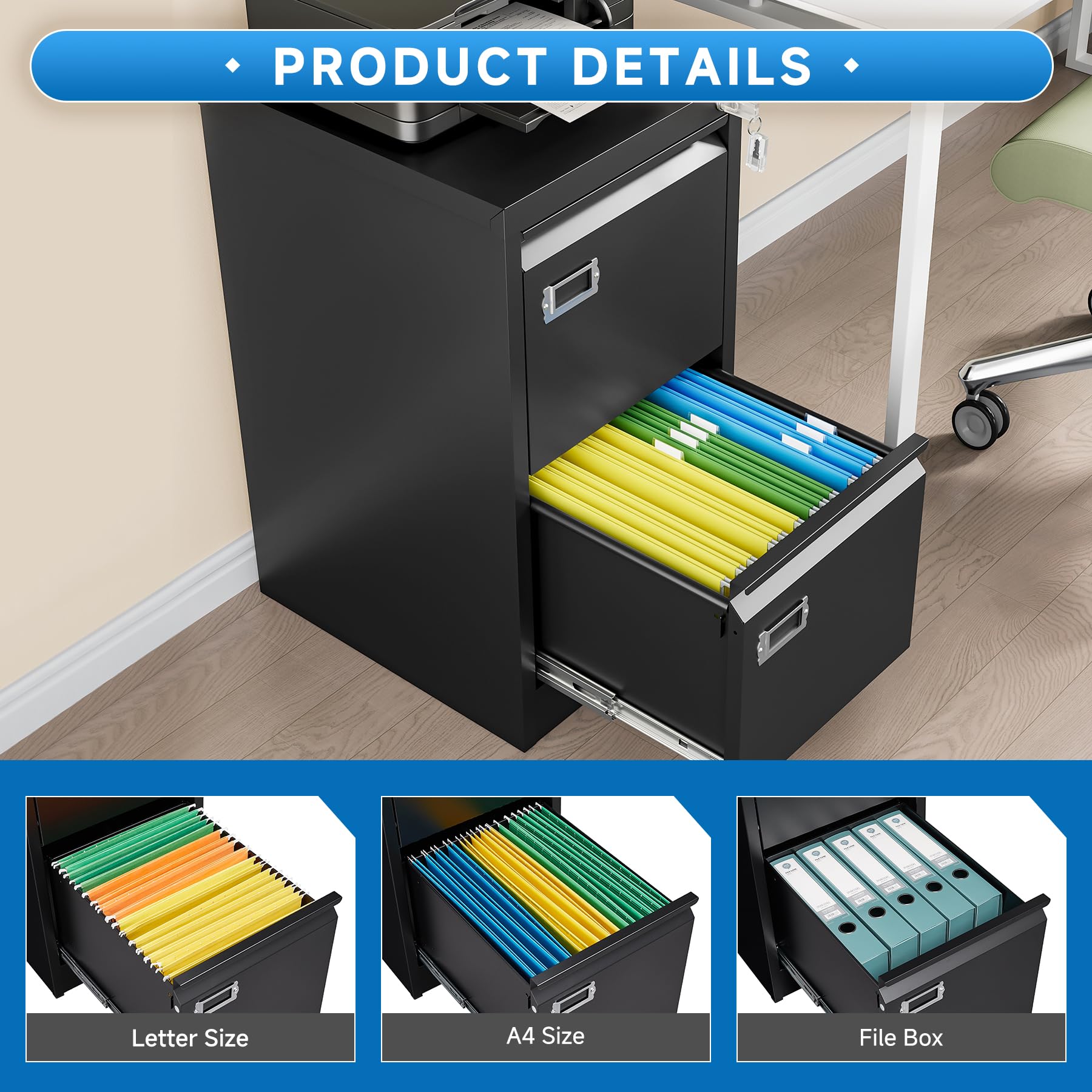 - 【HIGH CAPACITY】This filing cabinet consists of two drawers of the same size, which are large enough to accommodate A4, letters, file boxes, legal documents, etc. The drawers are also deep enough to store some office supplies.