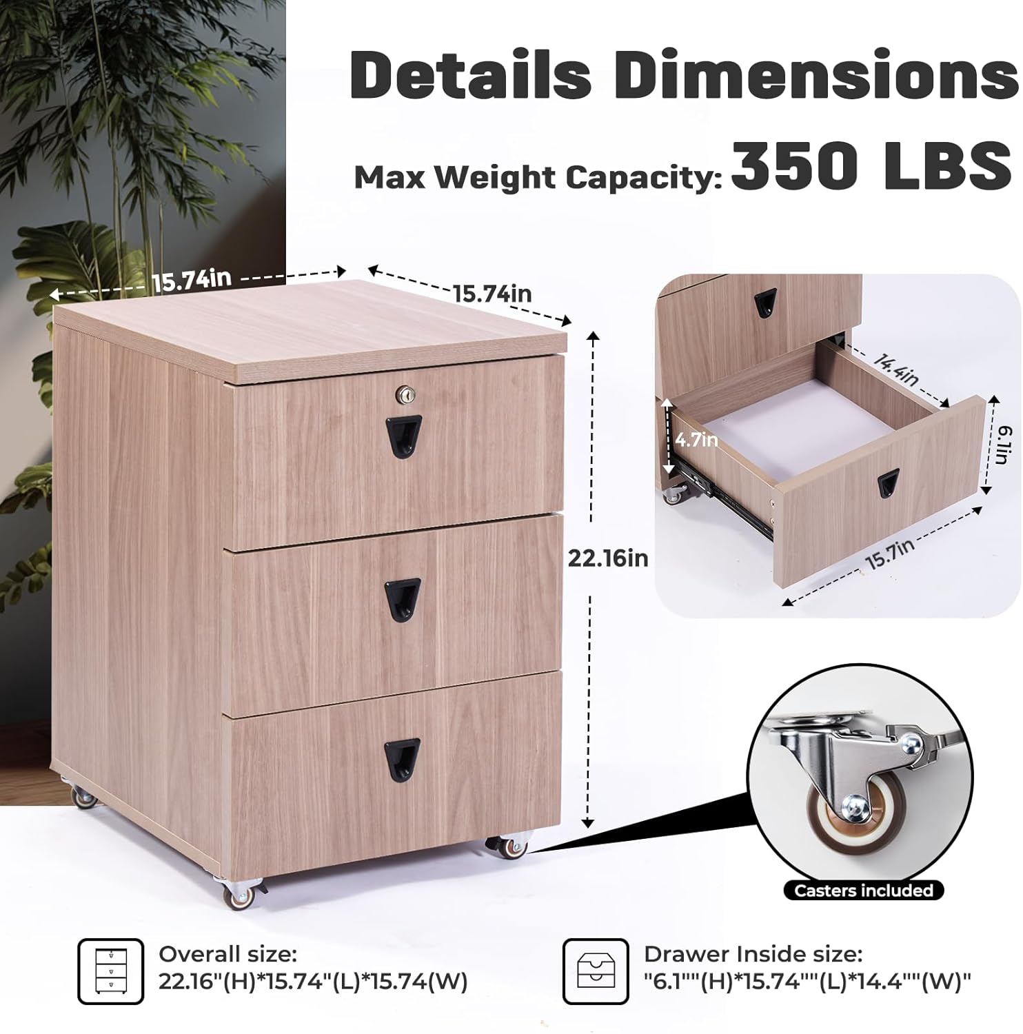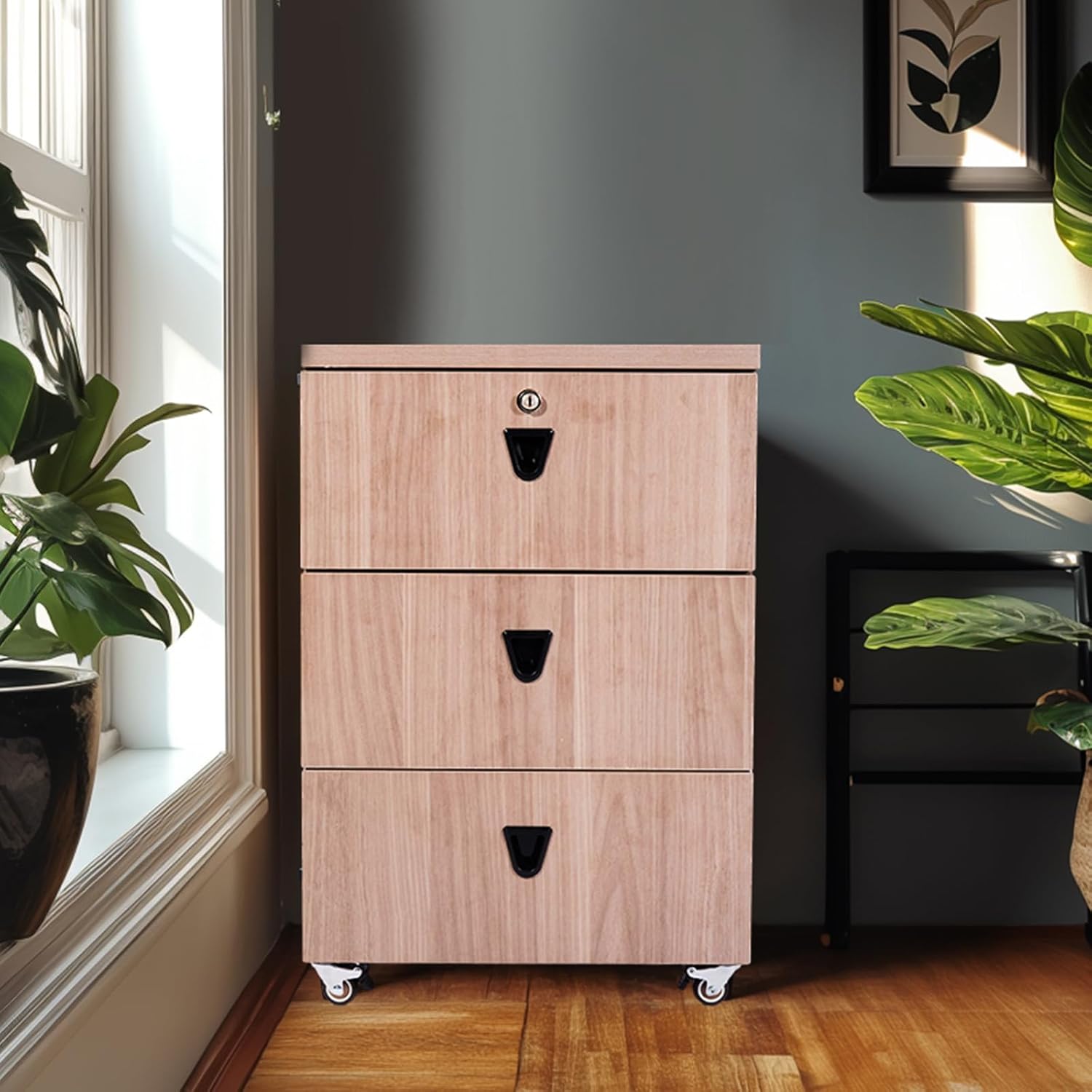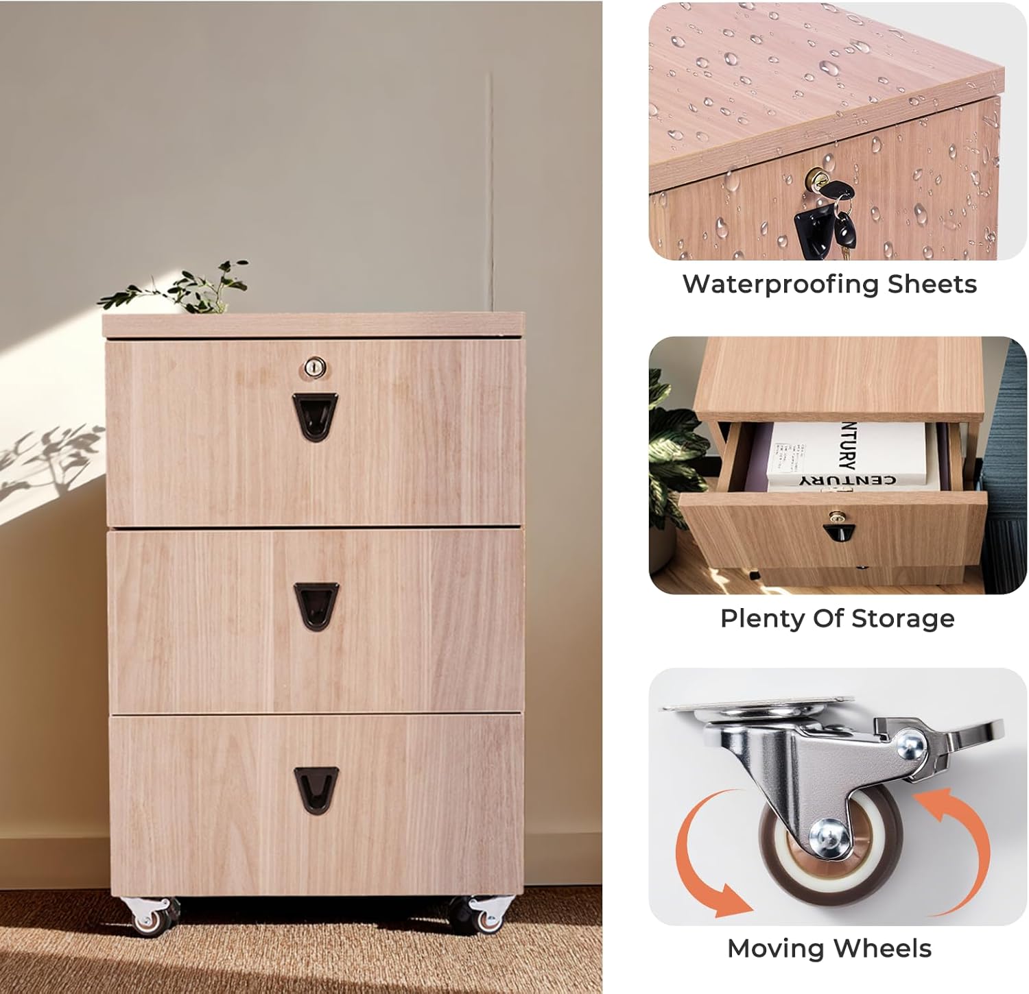 3 Drawer File Cabinet Wooden Rolling Printer Stand Storage Cabinet