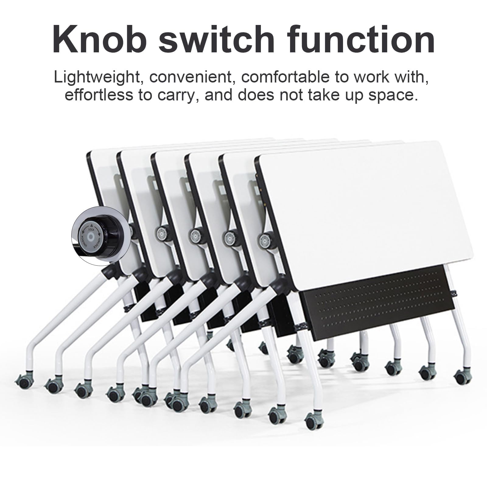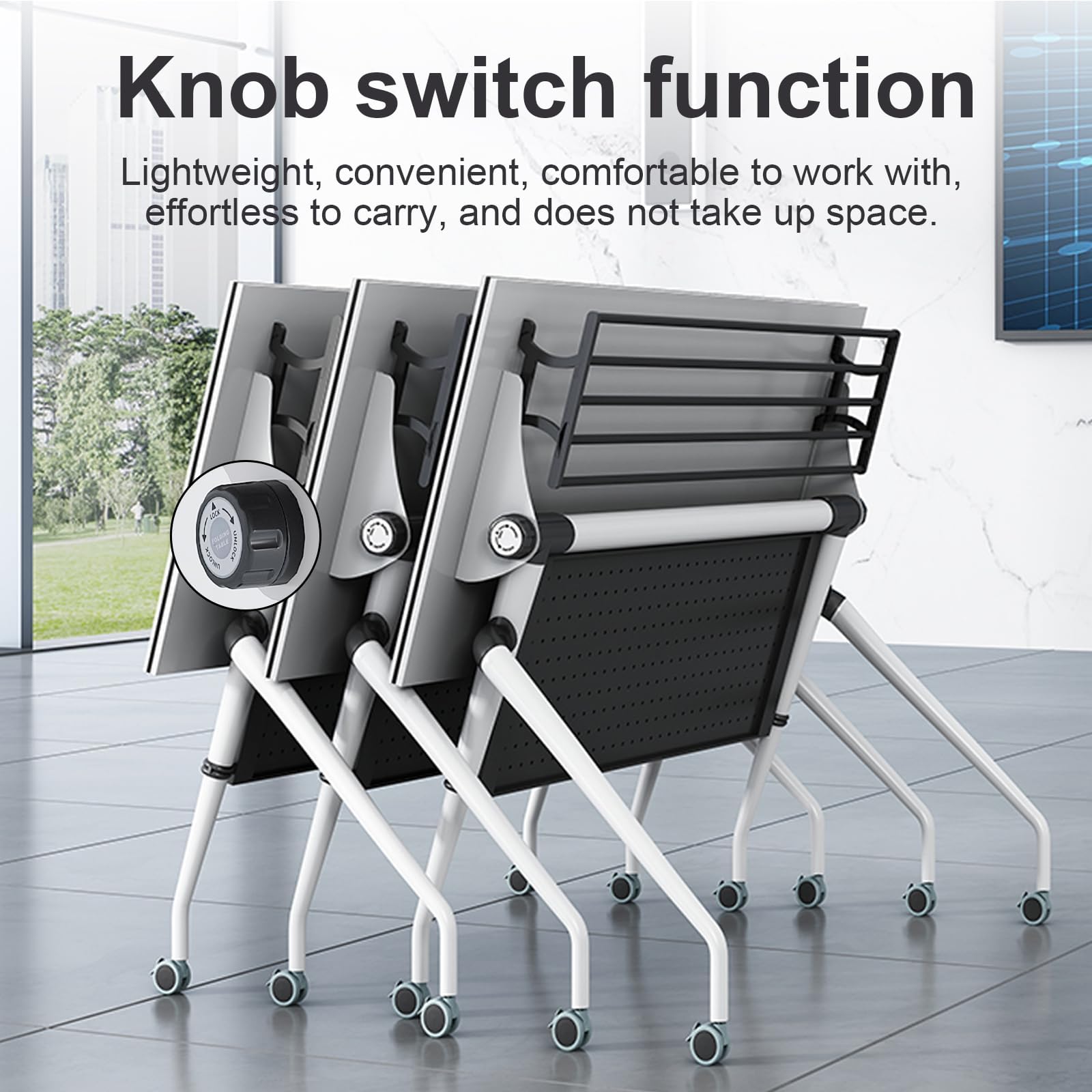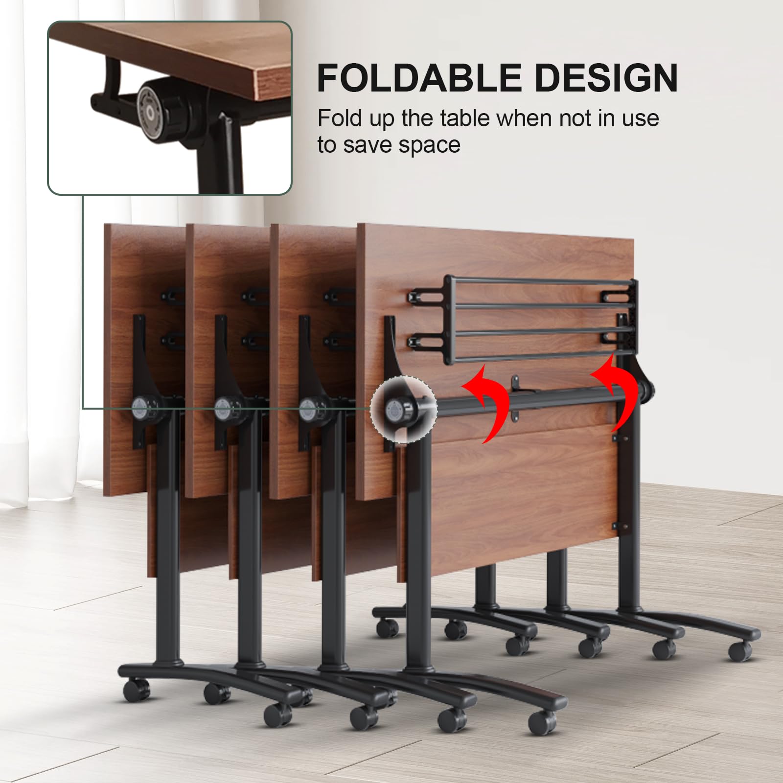 - ★【Foldable Conference Table】Designed for convenience and space saving, the foldable conference table features a folding function that quickly converts the durable laminate tabletop from a flat to an upright position via levers on both sides of the table. Easily folds and stores when not in use, making it ideal for conference and training rooms with limited space.