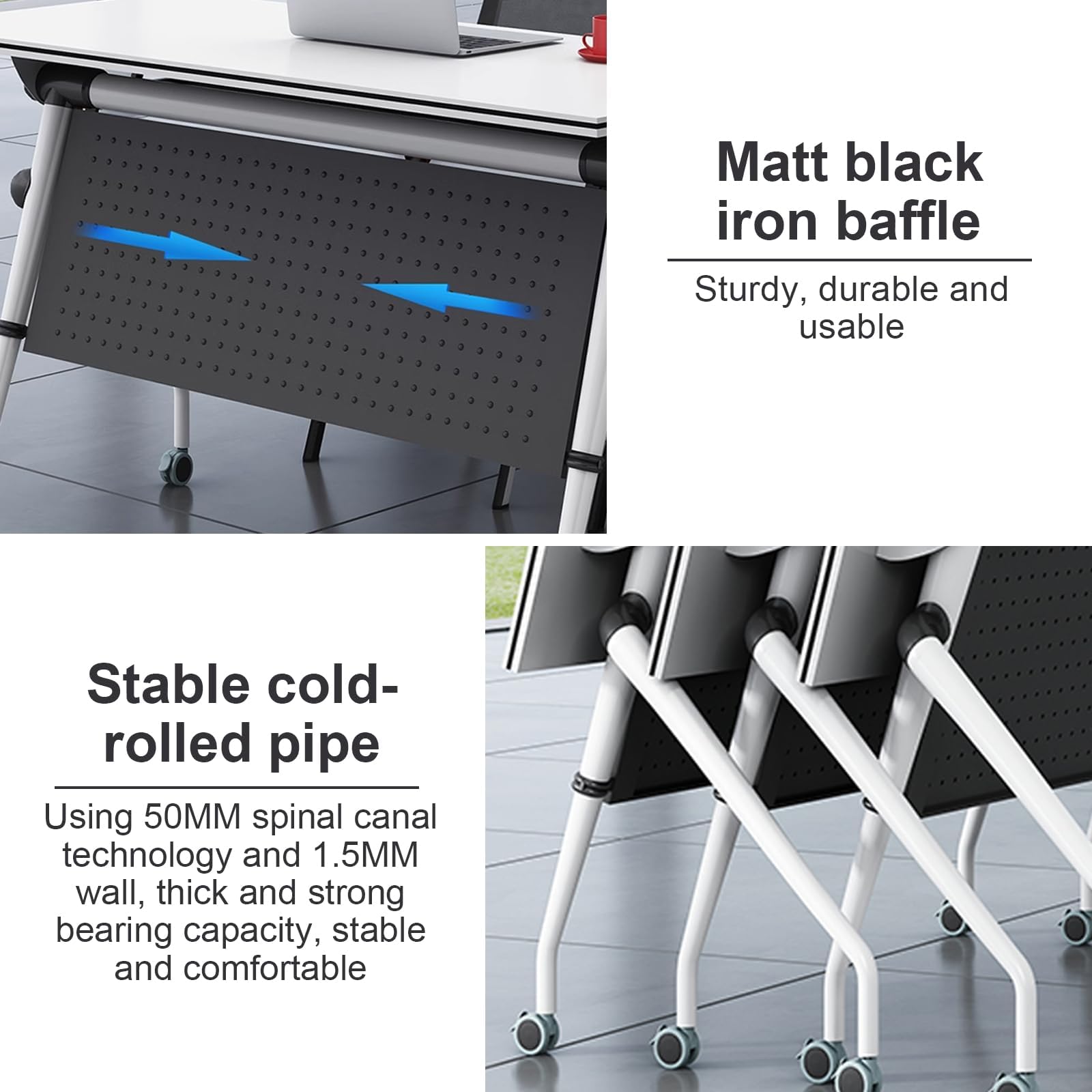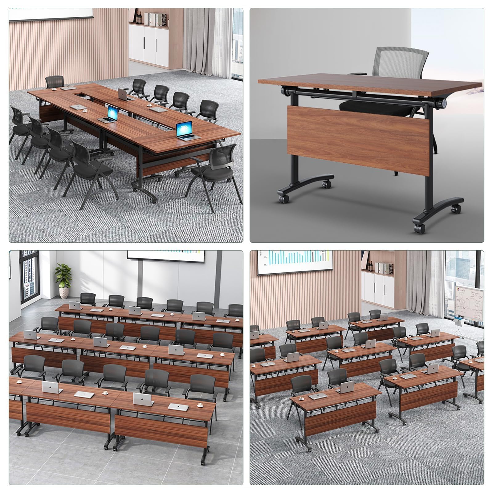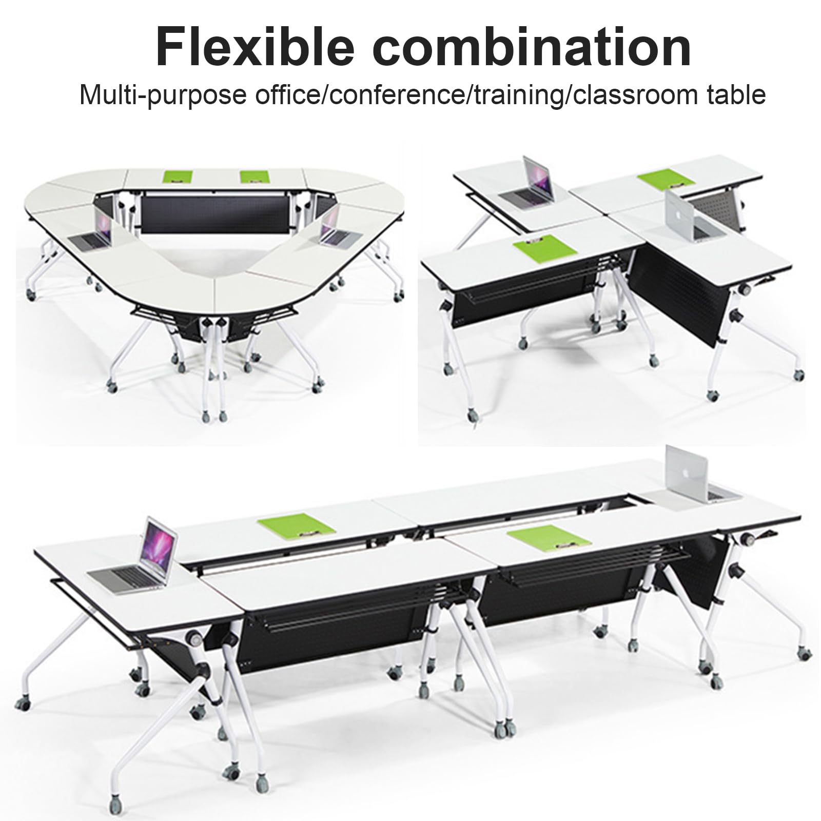 - ★【Mobile design】Each conference table has 4 casters, with high load-bearing capacity and stability. The wheels spin quickly to organize your office space more efficiently. The foldable flip-top mobile training table is ideal for different grouping needs, allowing you to quickly put the table together.