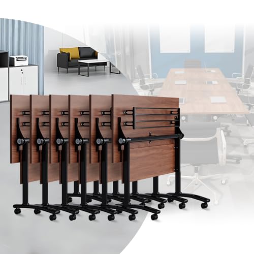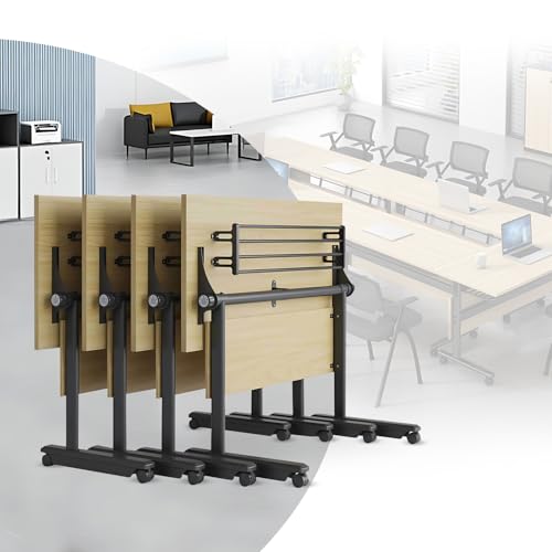 - 【Foldable Conference Table】Engineered for convenience and space optimization, this innovative conference table boasts a folding mechanism that tabletop from a flat to an upright position with knob located on sides. Effortlessly foldable and storable when not in use, it's the idealist solution for conference and training rooms constrained by limited space.