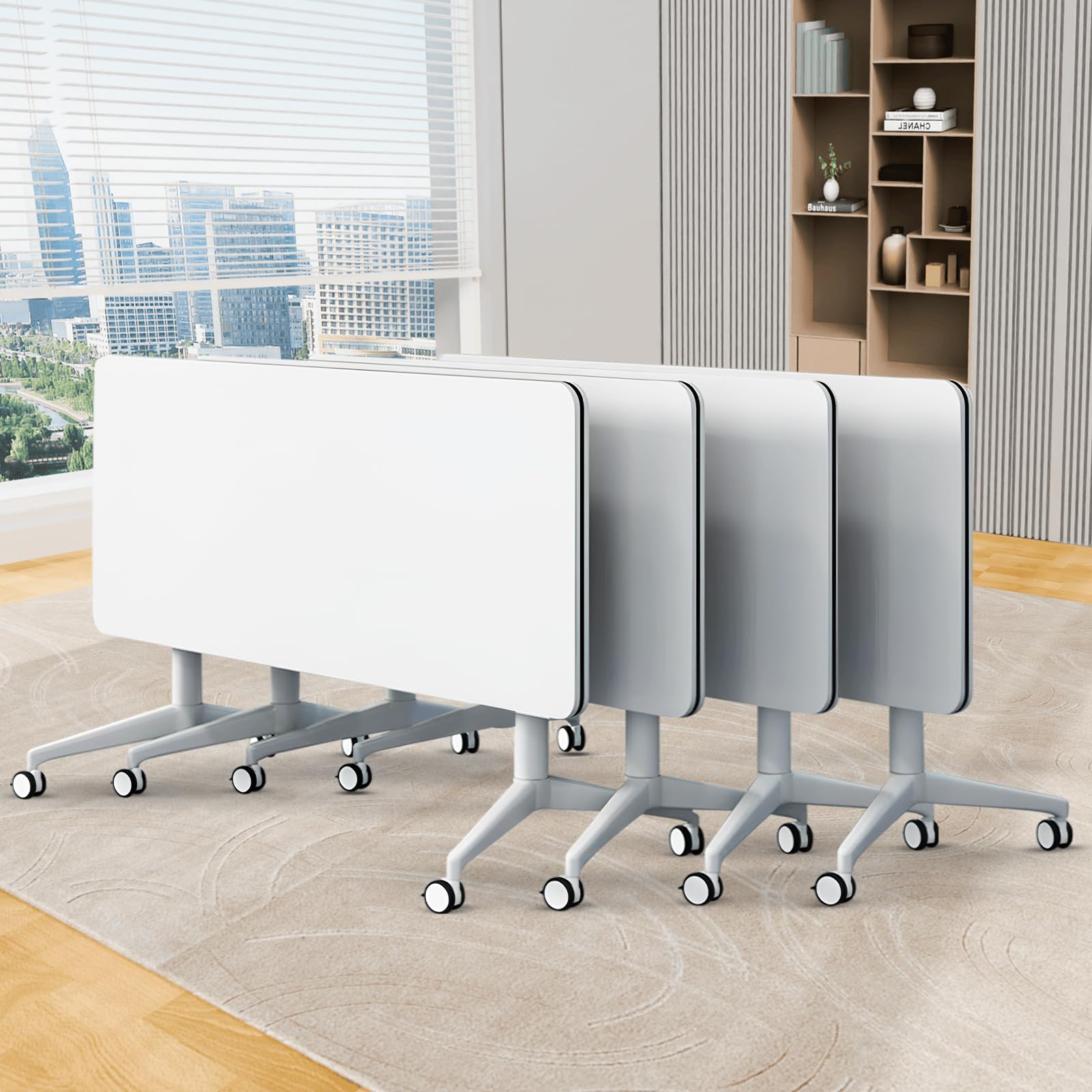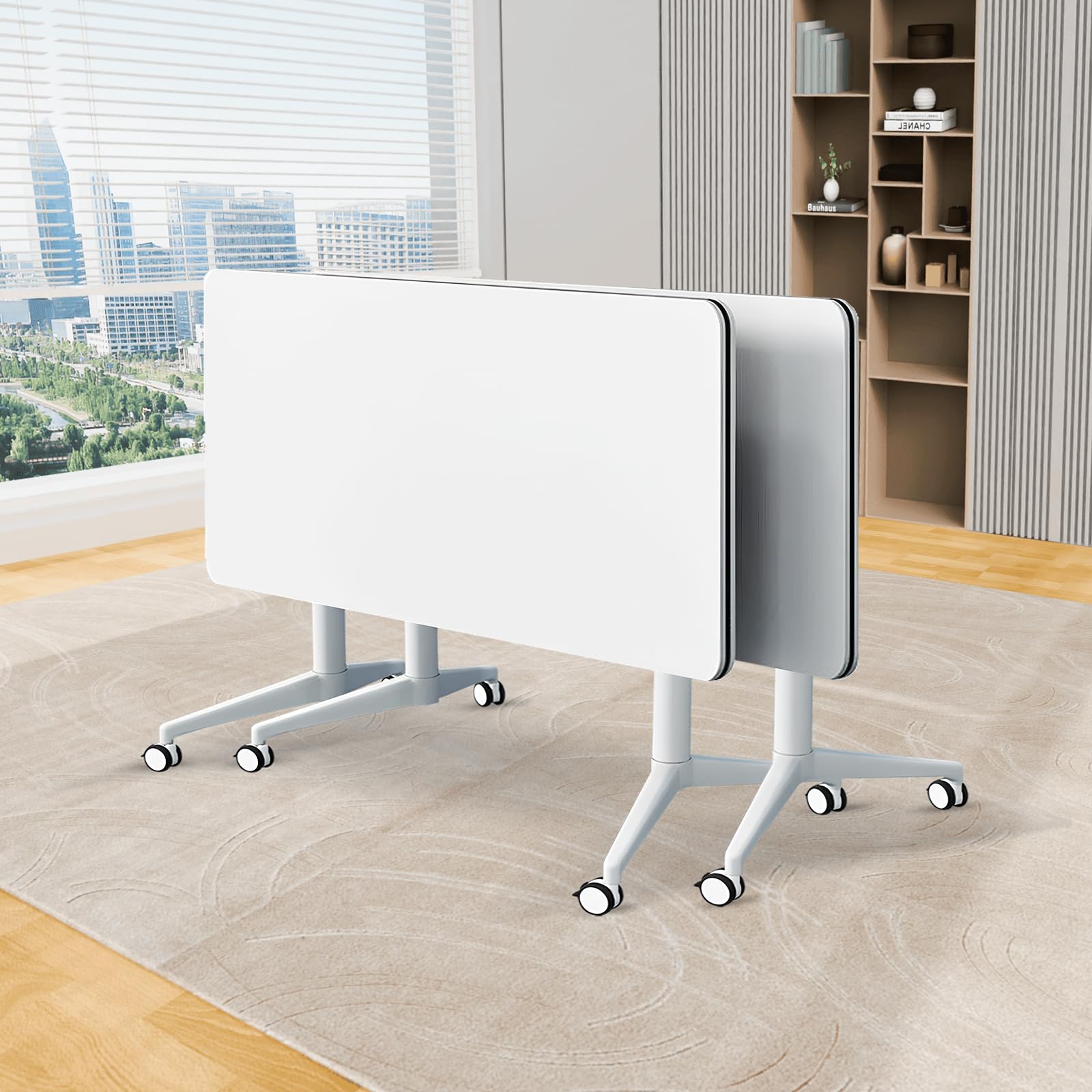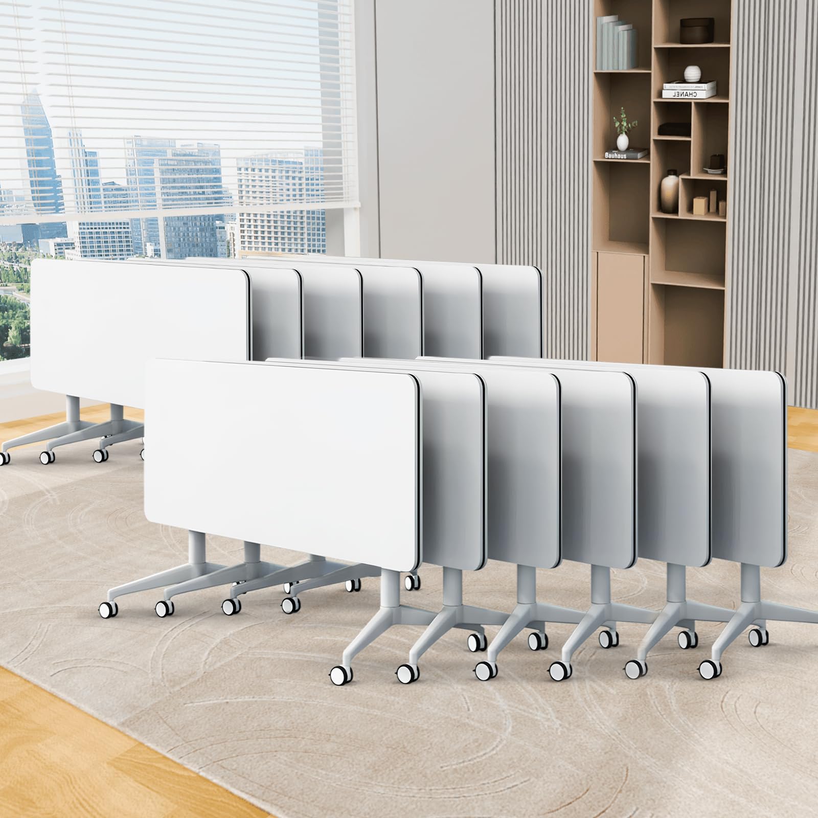 - ✅【Foldable Conference Table】The folding conference table with wheels is convenient and fast, and it can be quickly folded, unfolded or spliced. Equipped with foldable buttons on both sides, just a slight twist can quickly flip fold and automatically lock, portable and easy to store. The flip-top mobile conference tables are more userfriendly and can be stacked for storage to save space and avoid office crowding.
