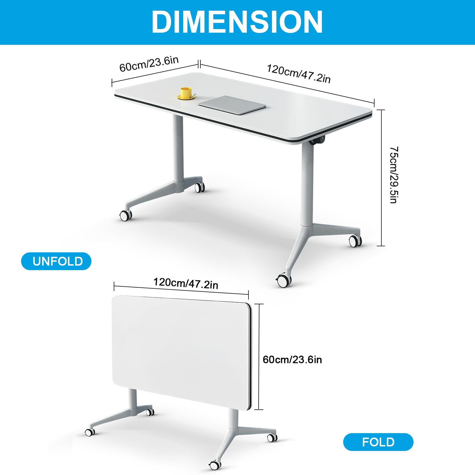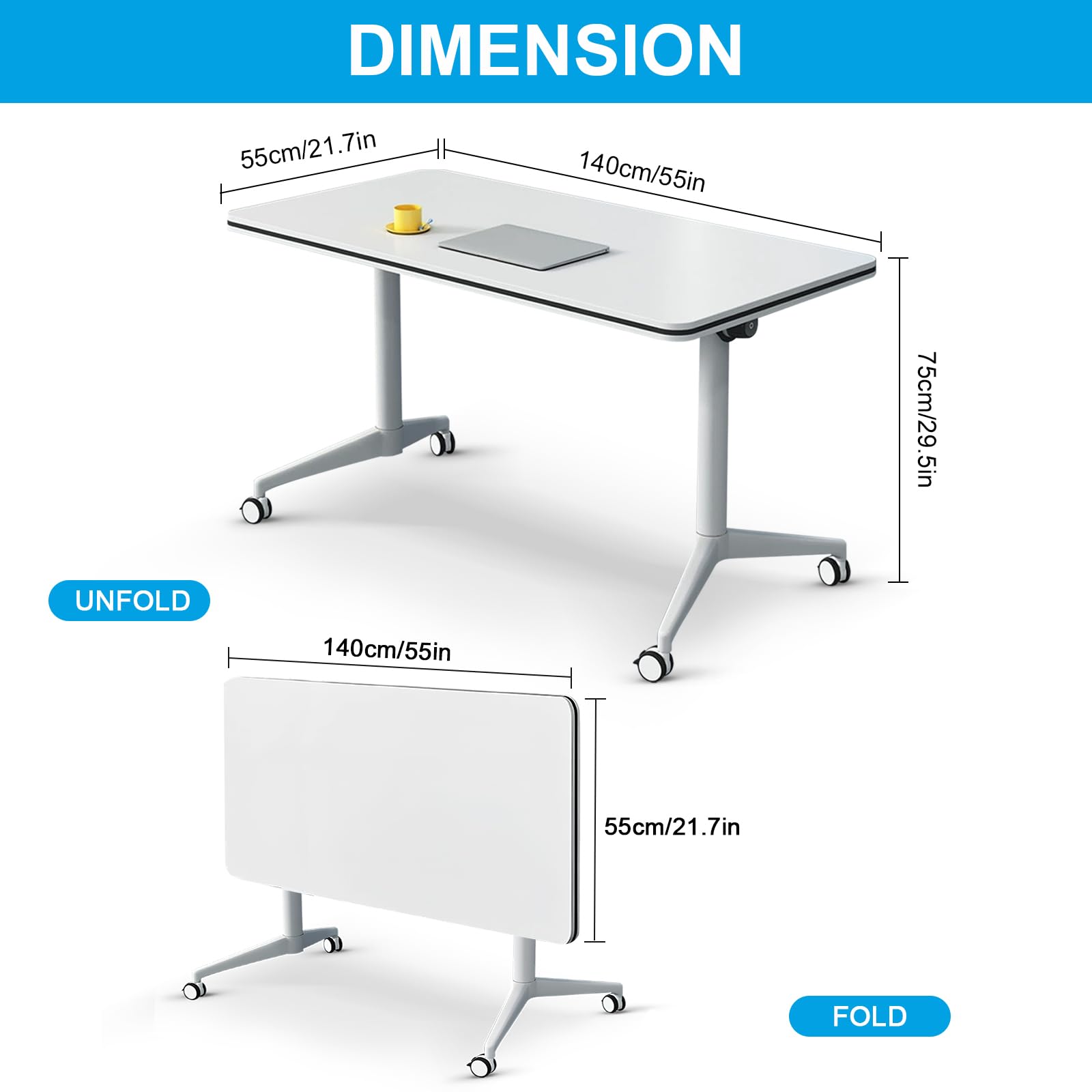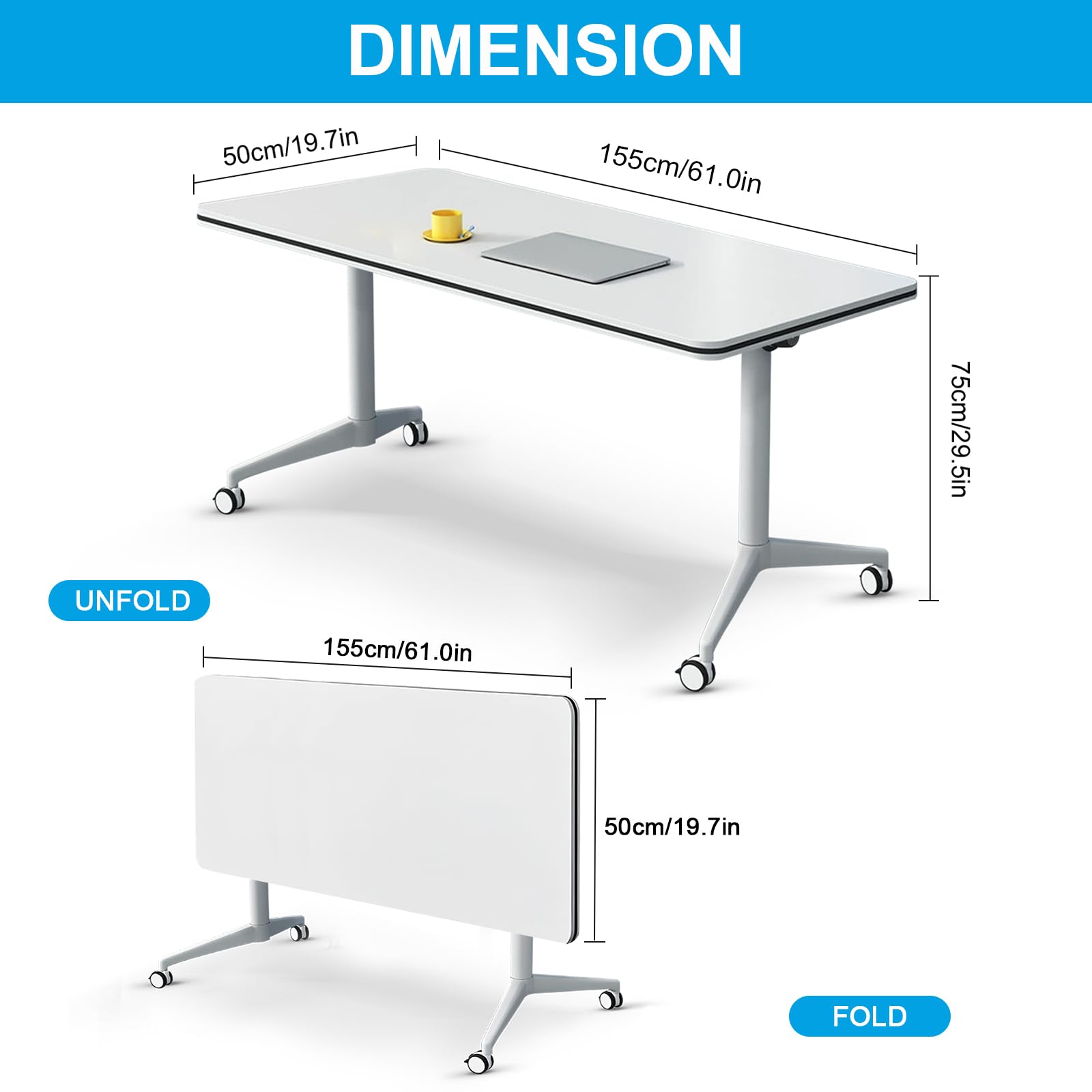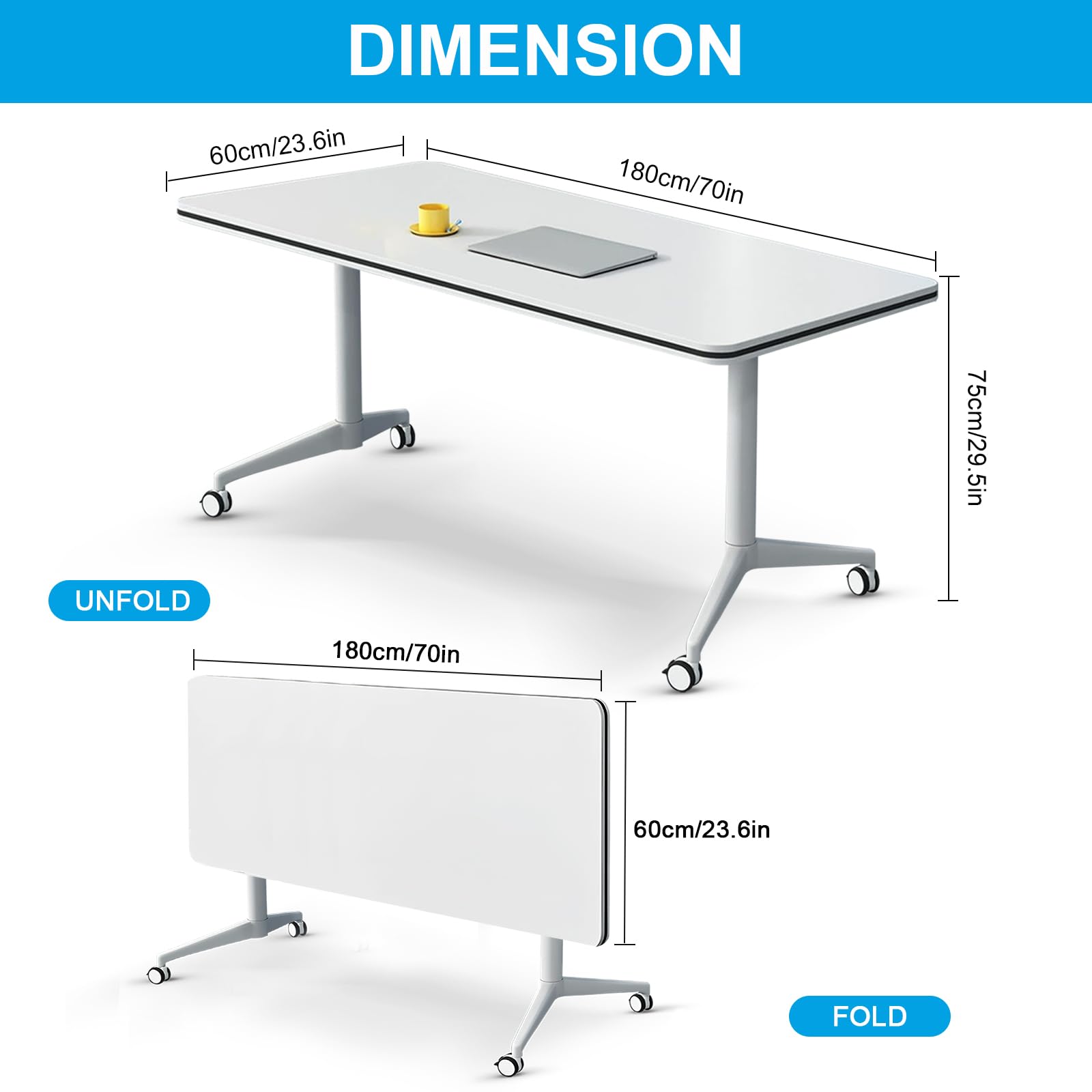 - ✅【Foldable Conference Table】The folding conference table with wheels is convenient and fast, and it can be quickly folded, unfolded or spliced. Equipped with foldable buttons on both sides, just a slight twist can quickly flip fold and automatically lock, portable and easy to store. The flip-top mobile conference tables are more userfriendly and can be stacked for storage to save space and avoid office crowding.