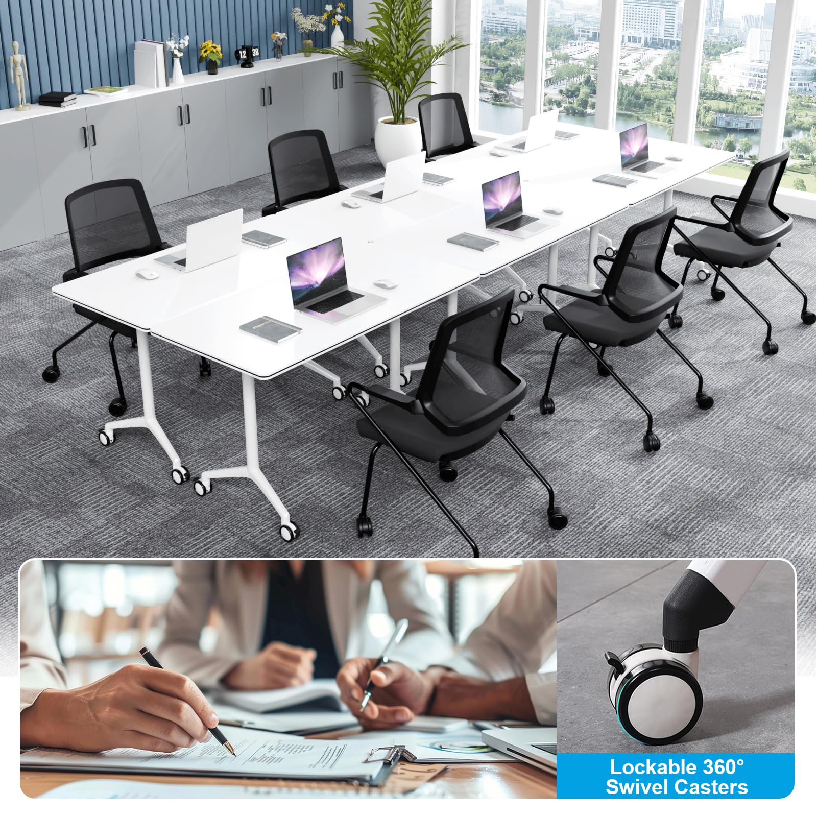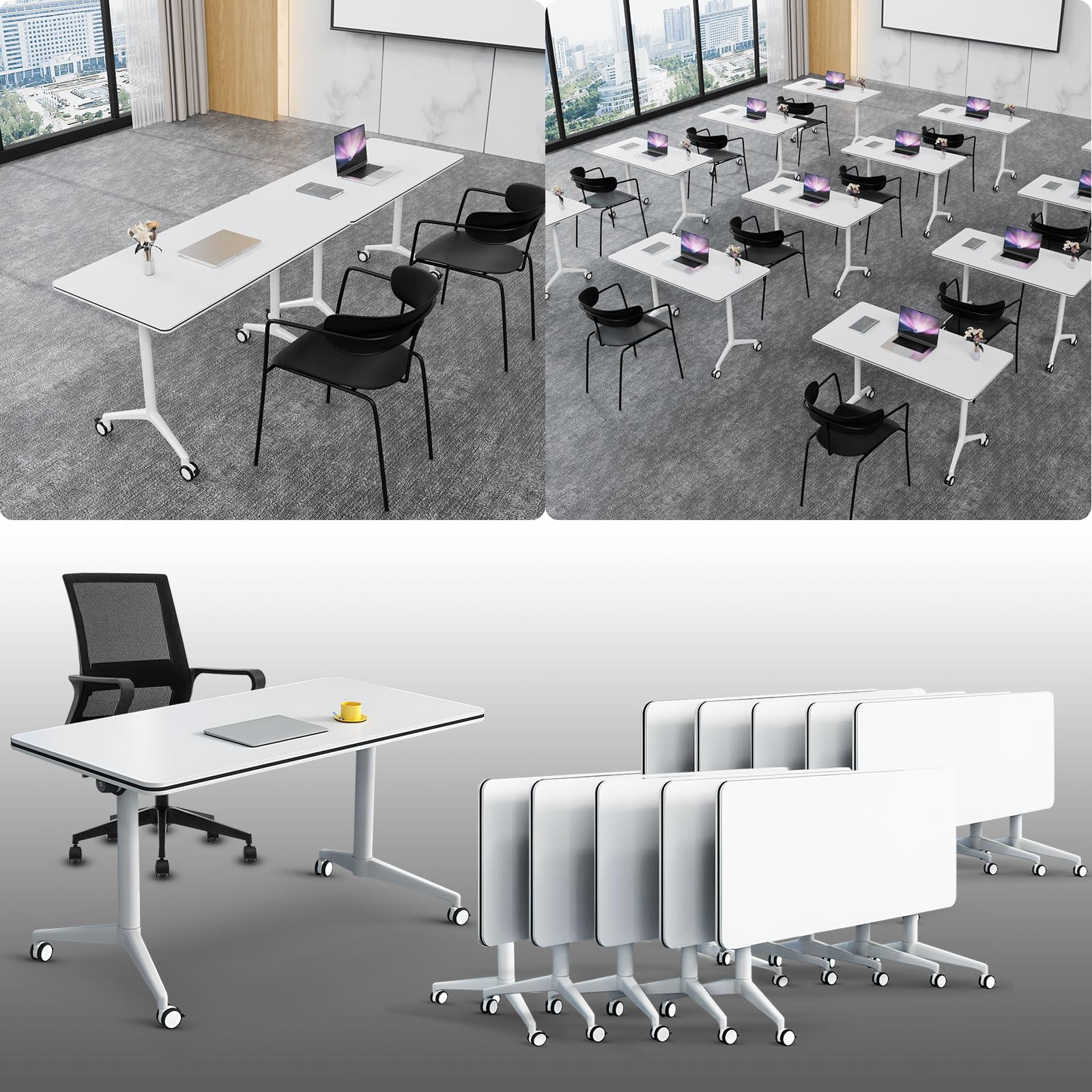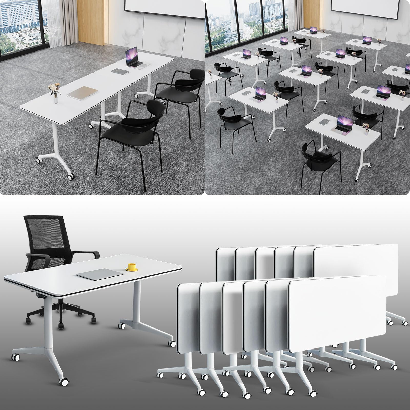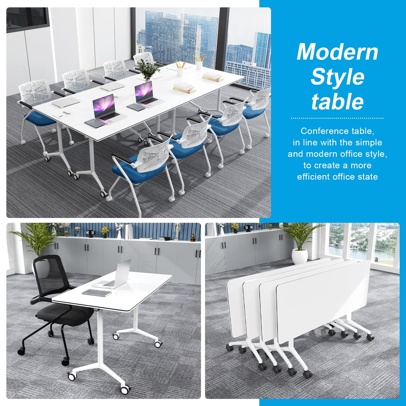 - ✅【Conference Room Tables with Wheels】The folding conference table is easy to move and can be locked for multiple uses. When you need to organize a large meeting, you can combine different numbers of conference tables to adjust the layout of the meeting room.