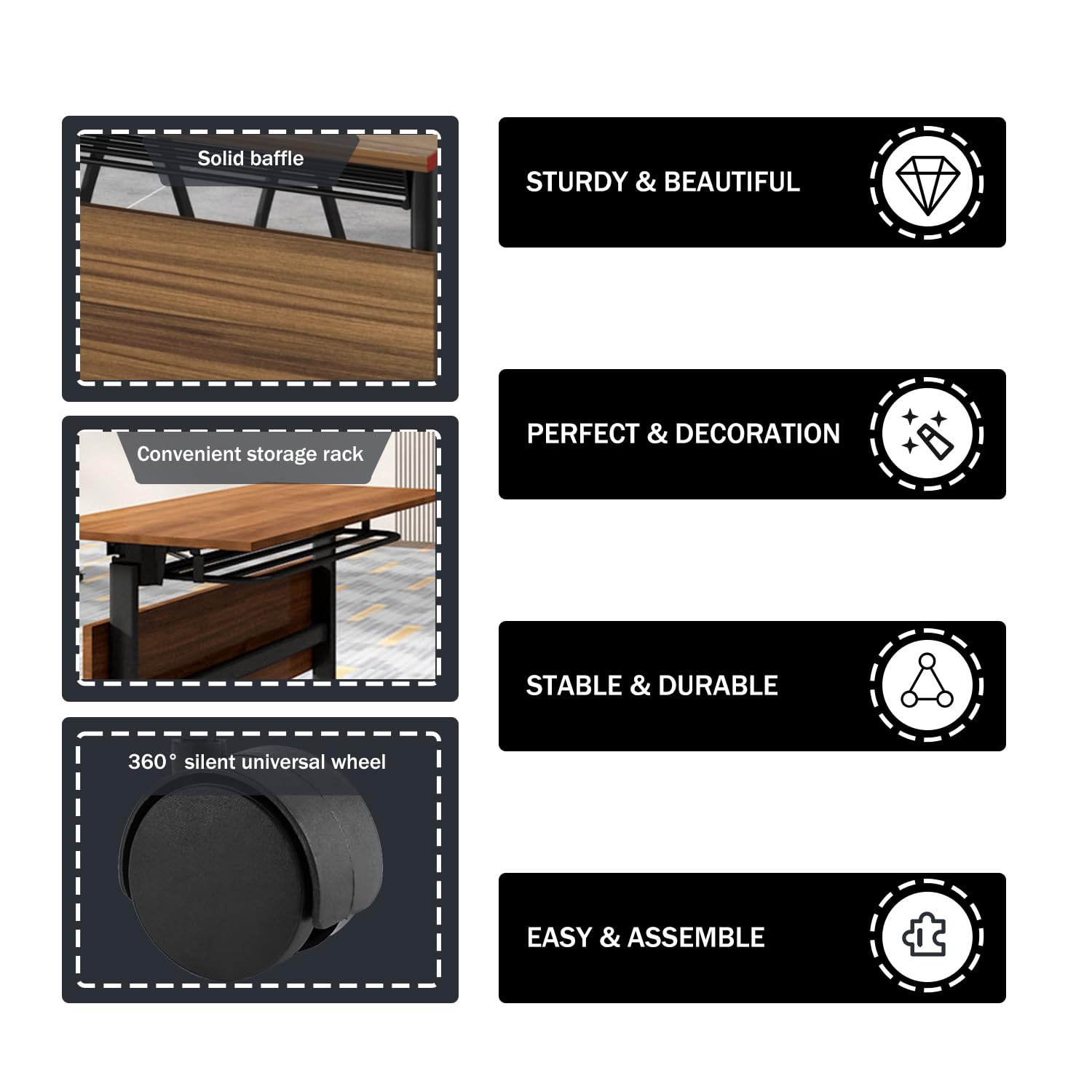 - 360°Mobility----This folding mobile Meeting table comes with 4 silent swivel wheels, the casters can quickly move 360° to any corner, which is flexible and convenient, saving effort and worry, when there is an emergency meeting training,the mobile conference table can be quickly moved and unfolded for meetings,Be able to respond to the needs of office meetings in a timely manner
