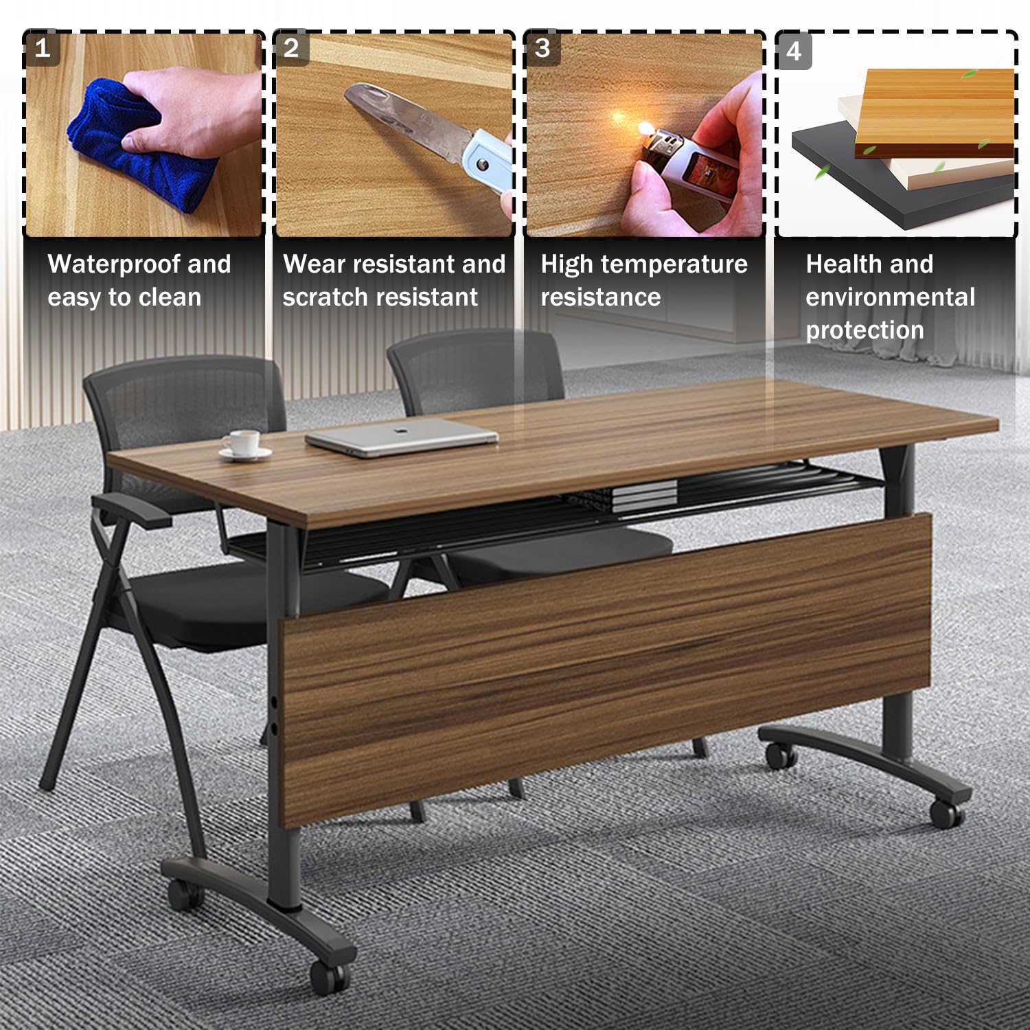 - Quick Folding Conference Table----The foldable conference room table is an excellent choice for conference rooms, reception rooms and training rooms,just turn the knob and the table can be flipped over easily, saving a lot of space and making it easy to store and carry.