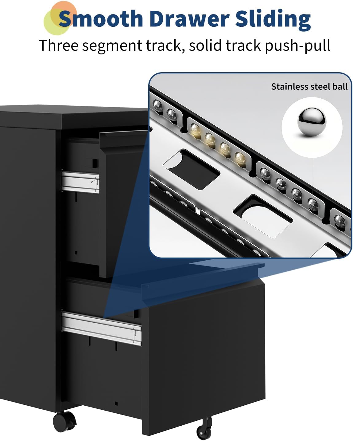- ENHANCED SAFETY - The mobile file cabinet includes a single locking mechanism with two keys, securing all three drawers to protect your important documents, while an interlocking system ensures only one drawer opens at a time to prevent tipping