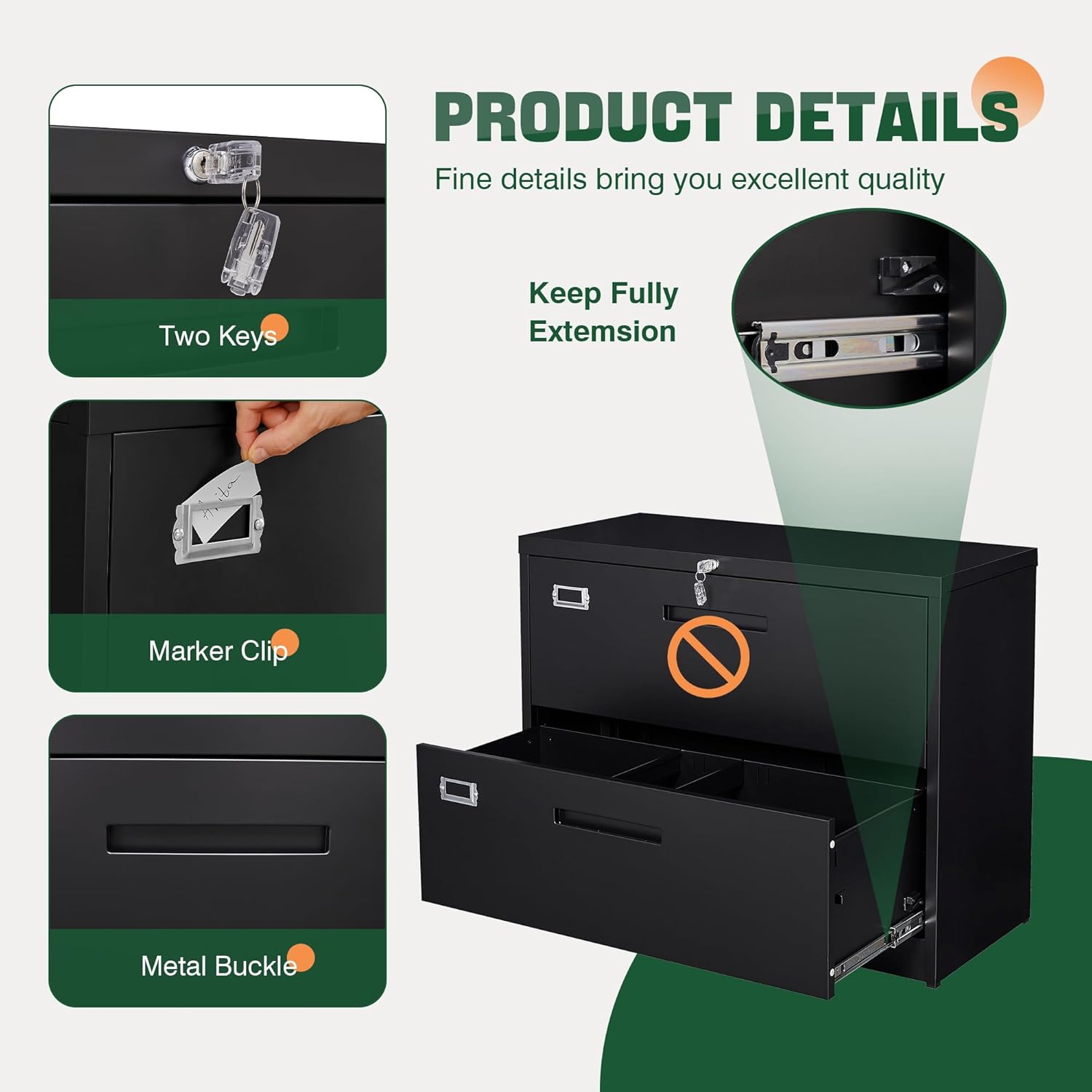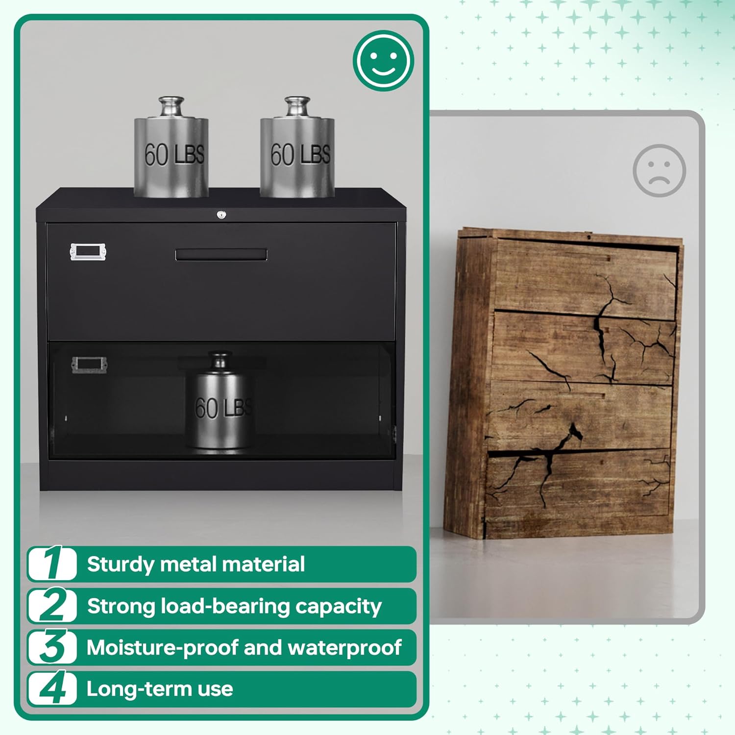 - All-steel Stable-Rustproof:Lateral file cabinet is made of thick high-strength cold-rolled solid all-steel material.Rugged and not easily deformed, powder-coated construction making it immune to corrosion and rust.It is ideal for long-term use