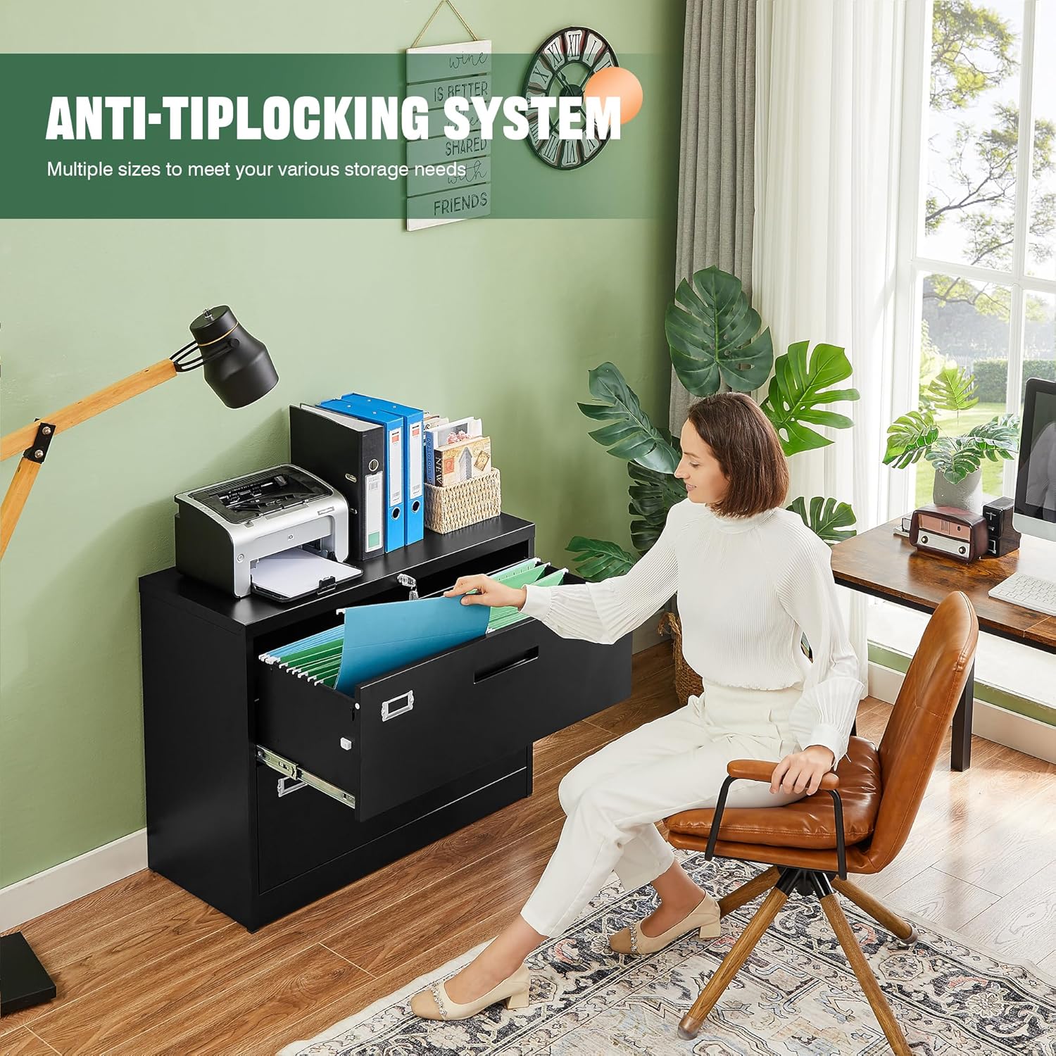 Letaya 2-Drawer Metal Lateral File Cabinet with Lock, Black