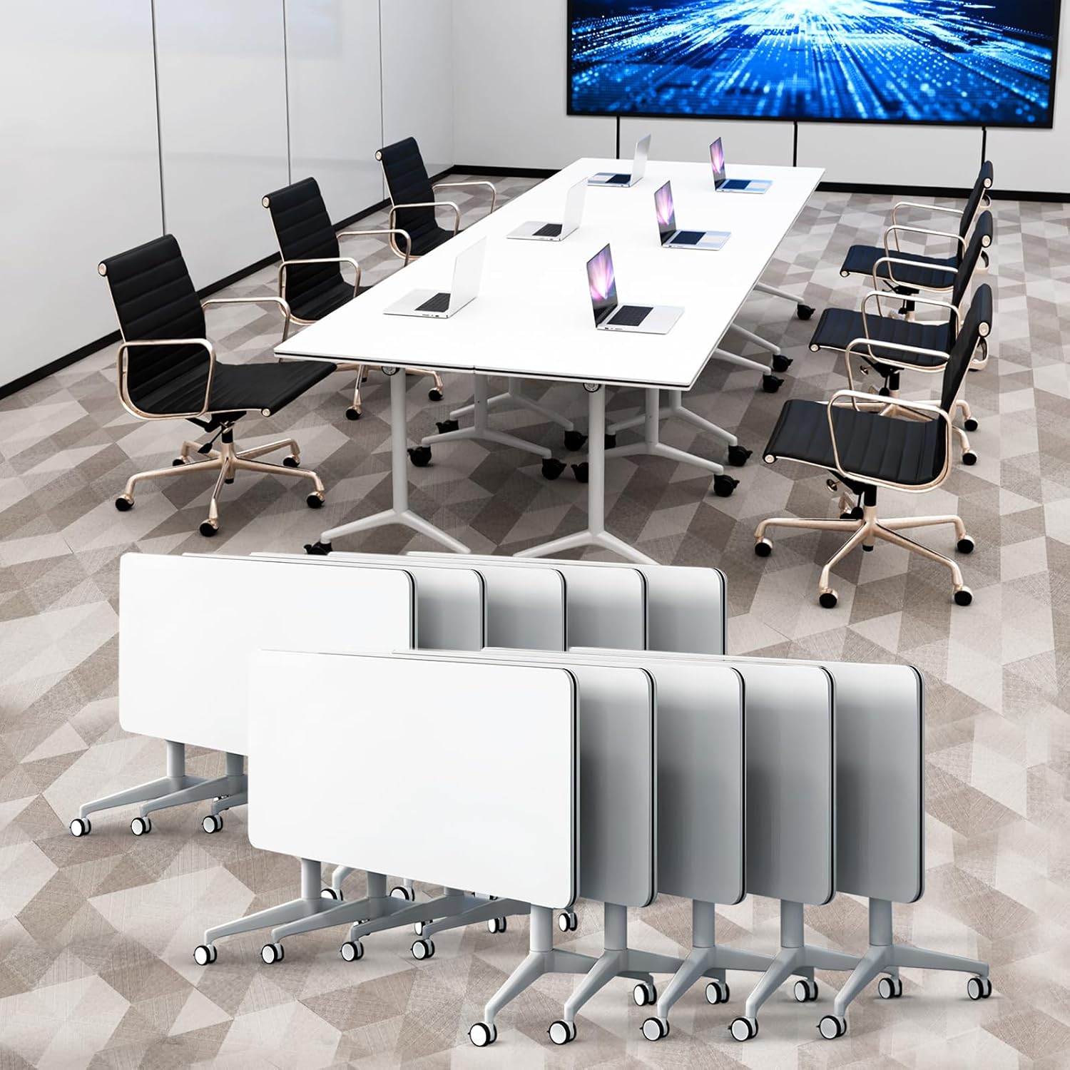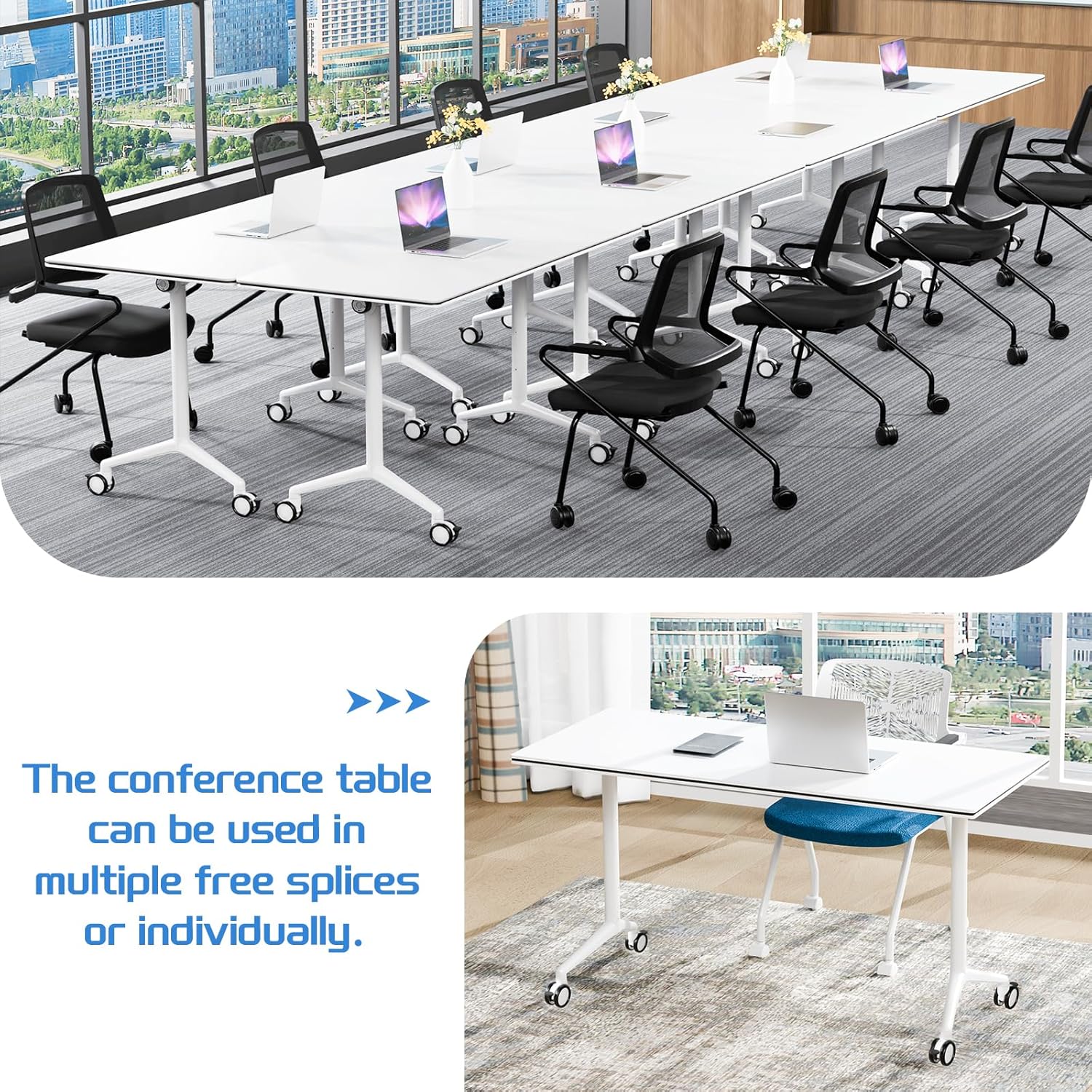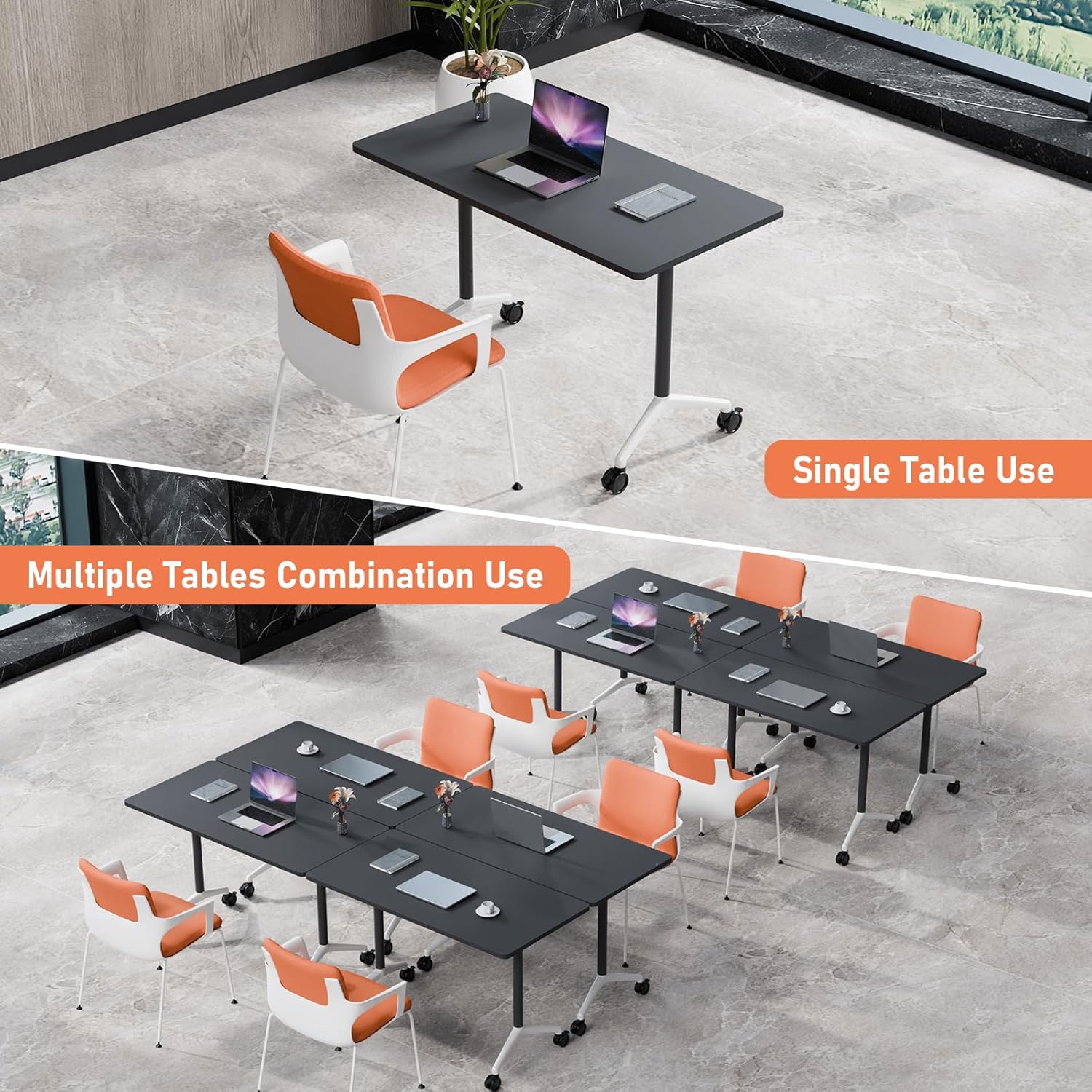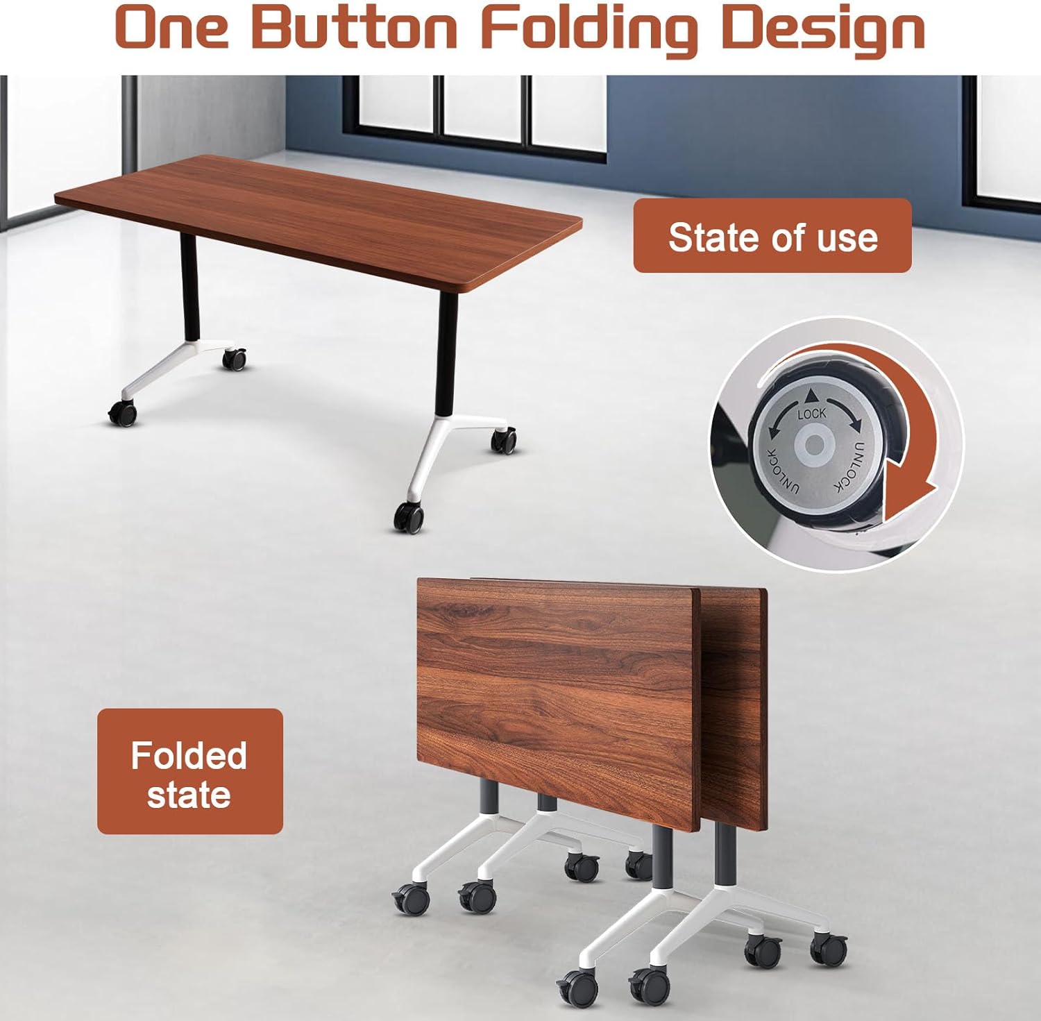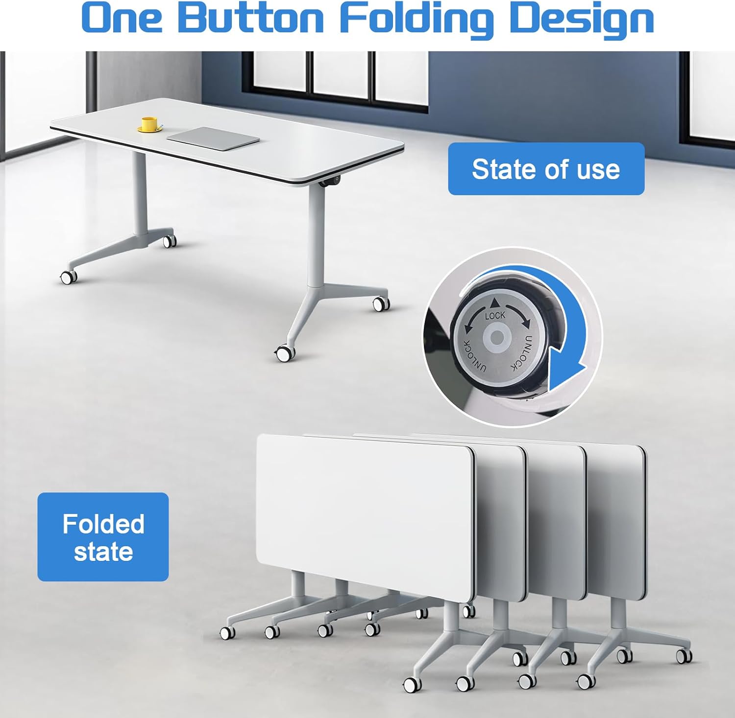 - 【One click folding saves space】The one click folding function of the conference room table can help you effectively solve the trouble of limited space use.When not in use,you can rotate the fold button to fold the conference table.This design not only saves you more space,but is also convenient for mobile and storage.