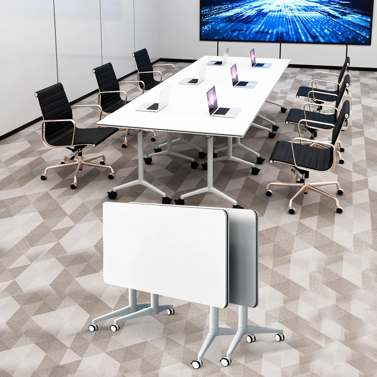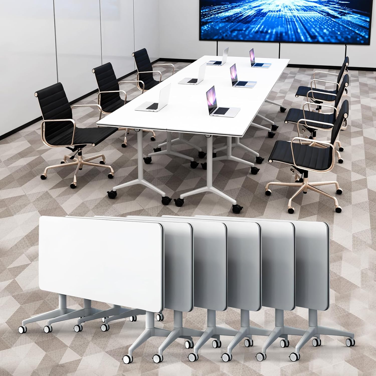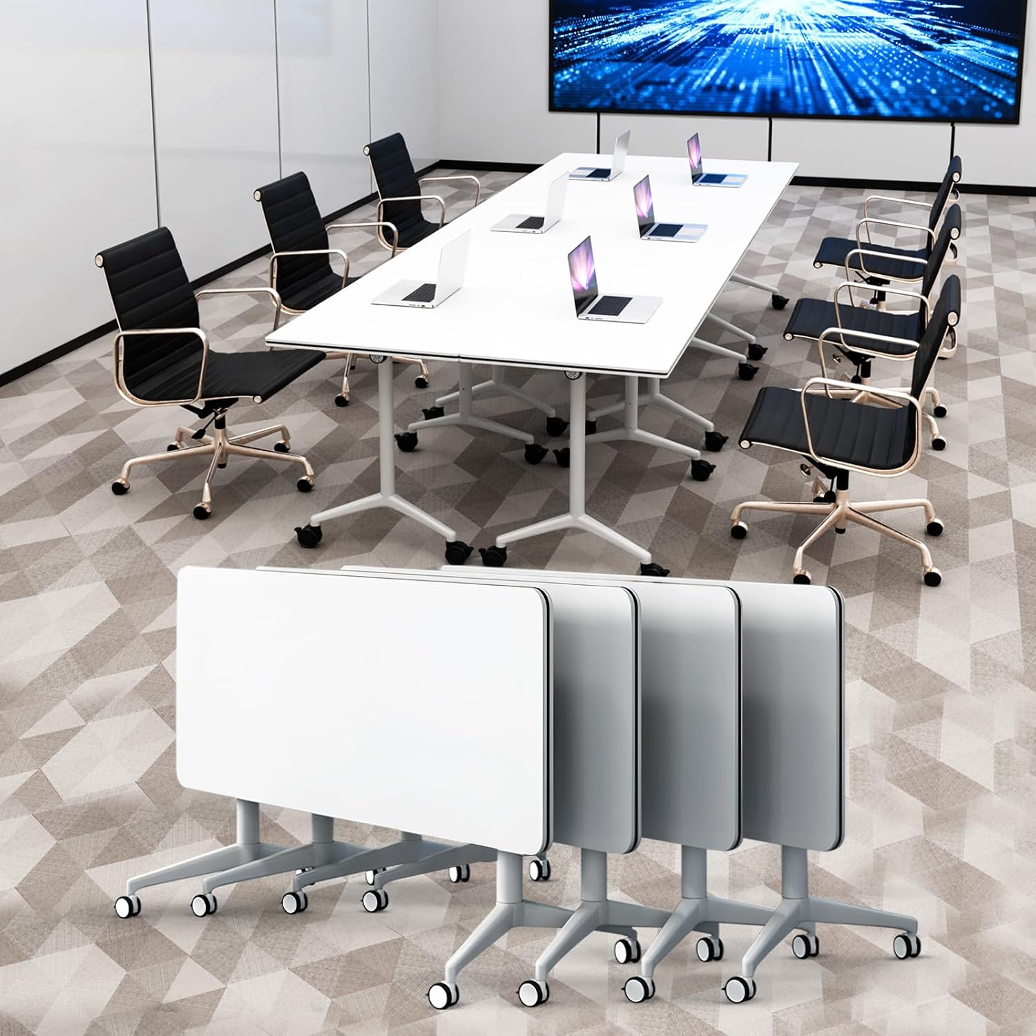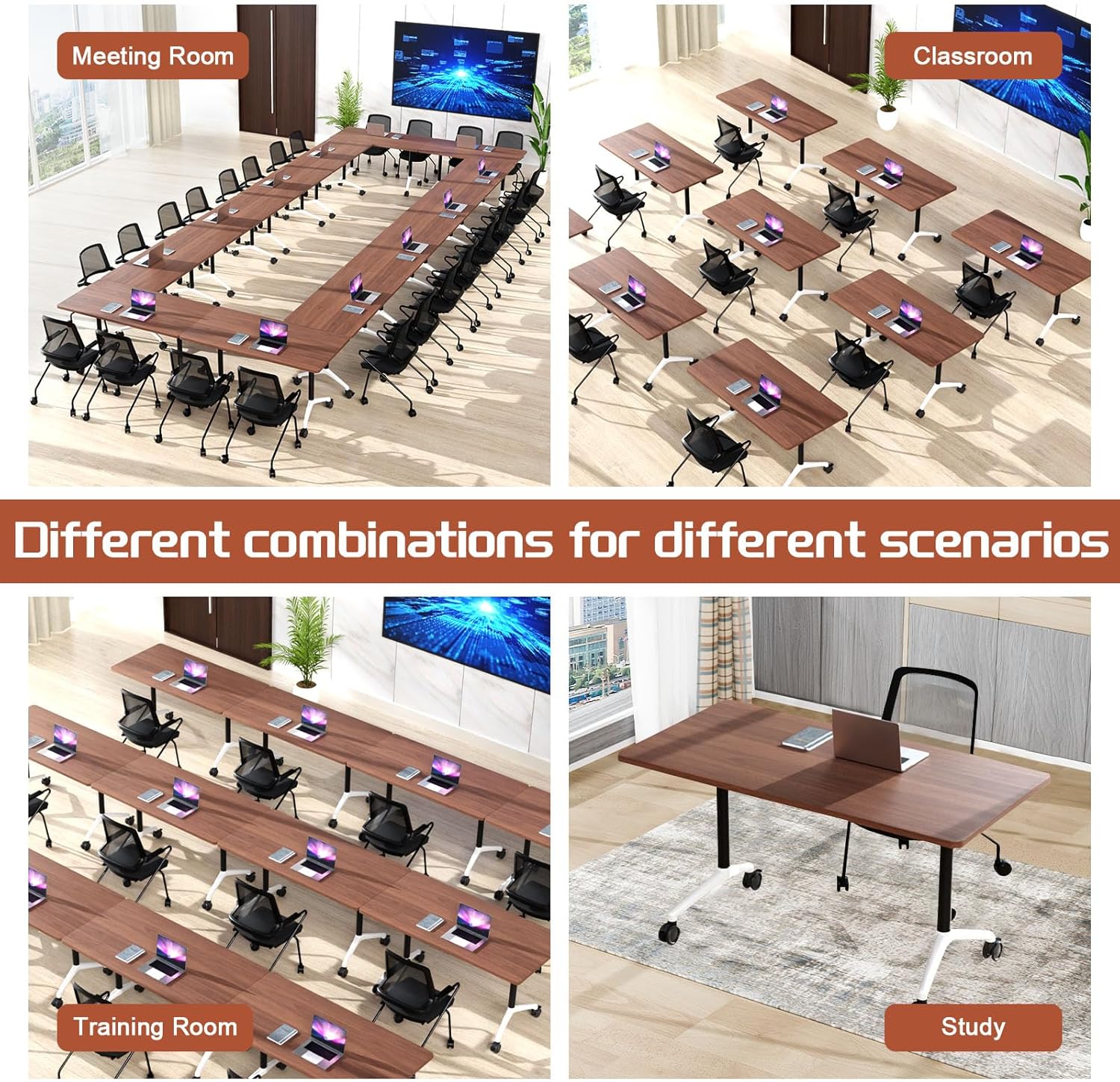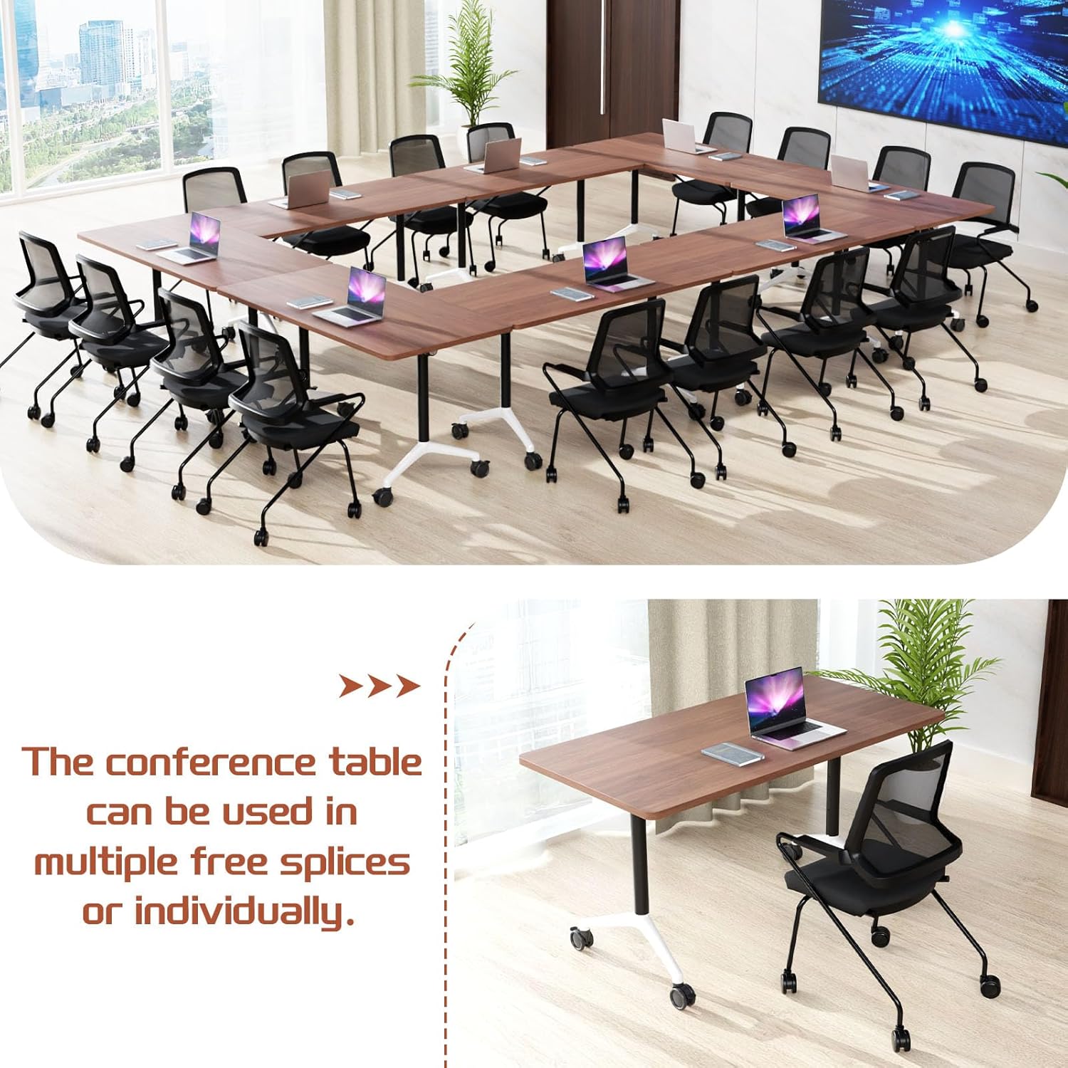 - 【One click folding saves space】The one click folding function of the conference room table can help you effectively solve the trouble of limited space use.When not in use,you can rotate the fold button to fold the conference table.This design not only saves you more space,but is also convenient for mobile and storage.