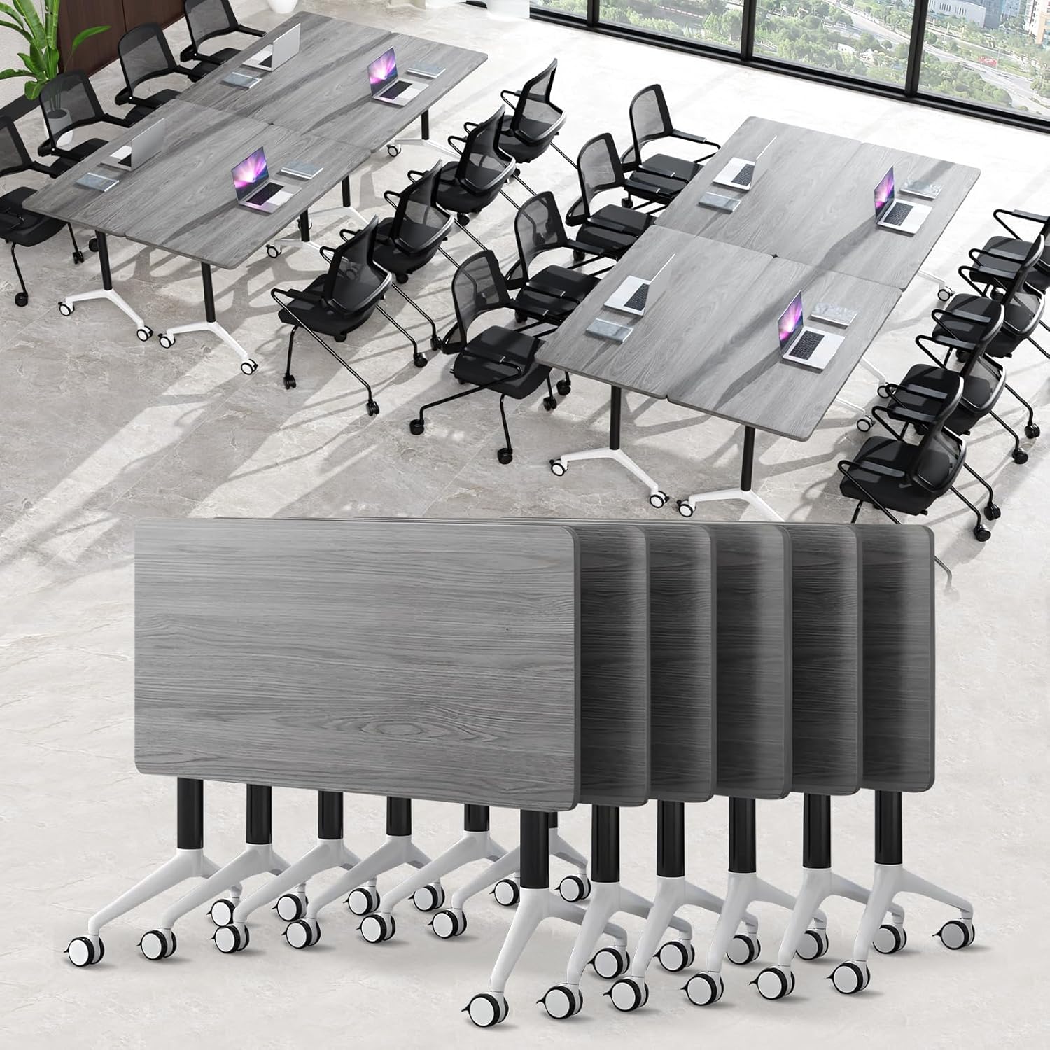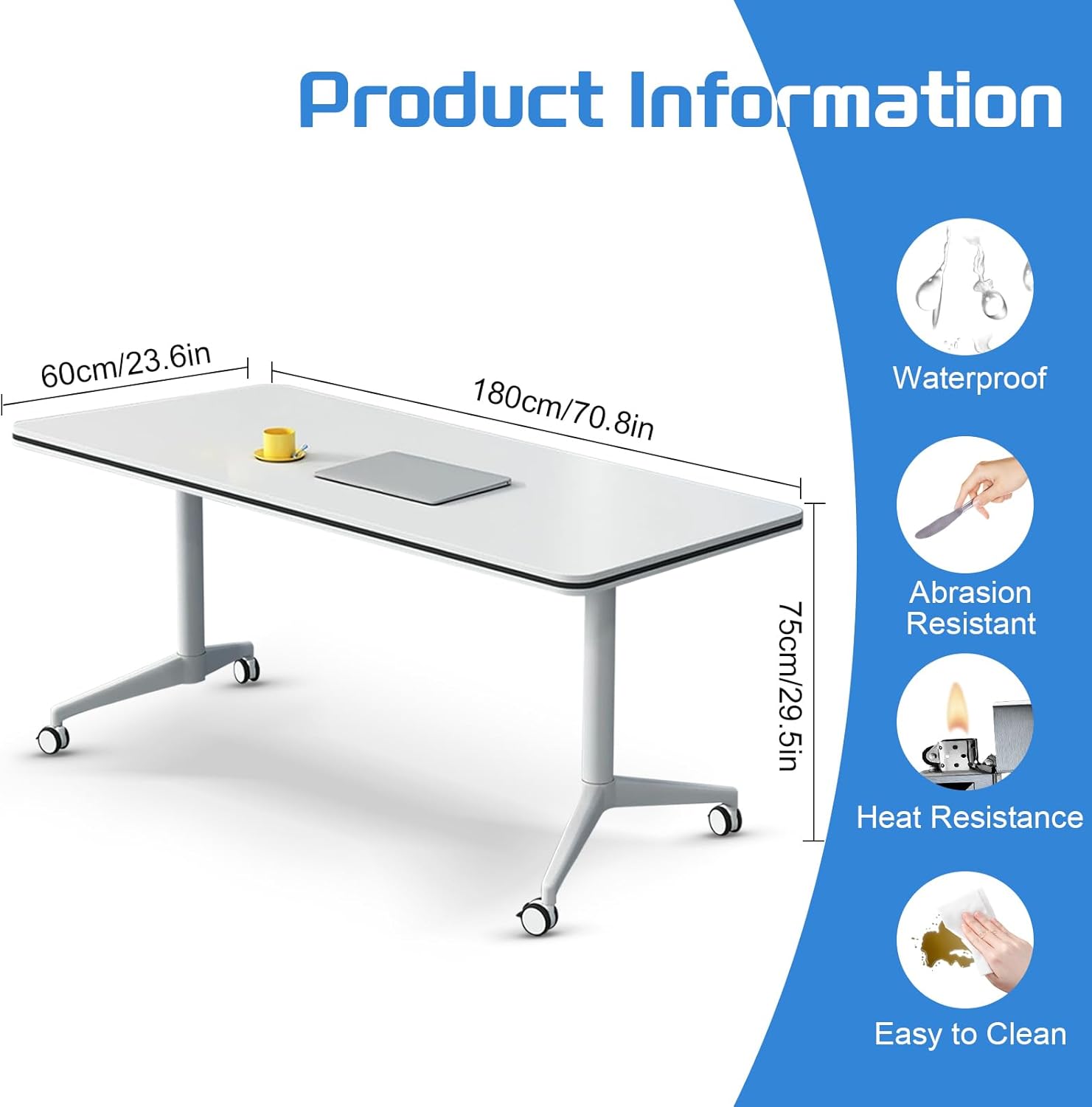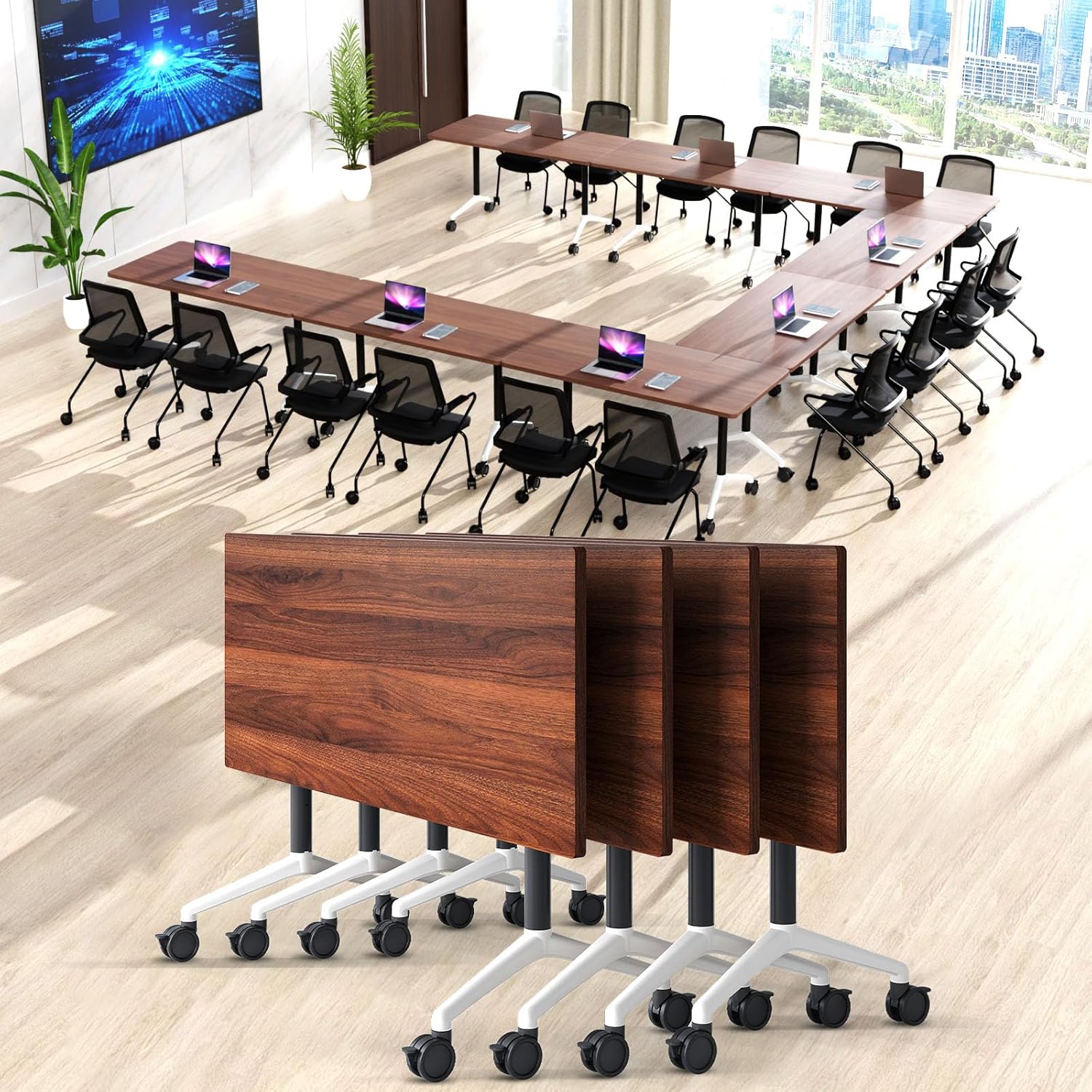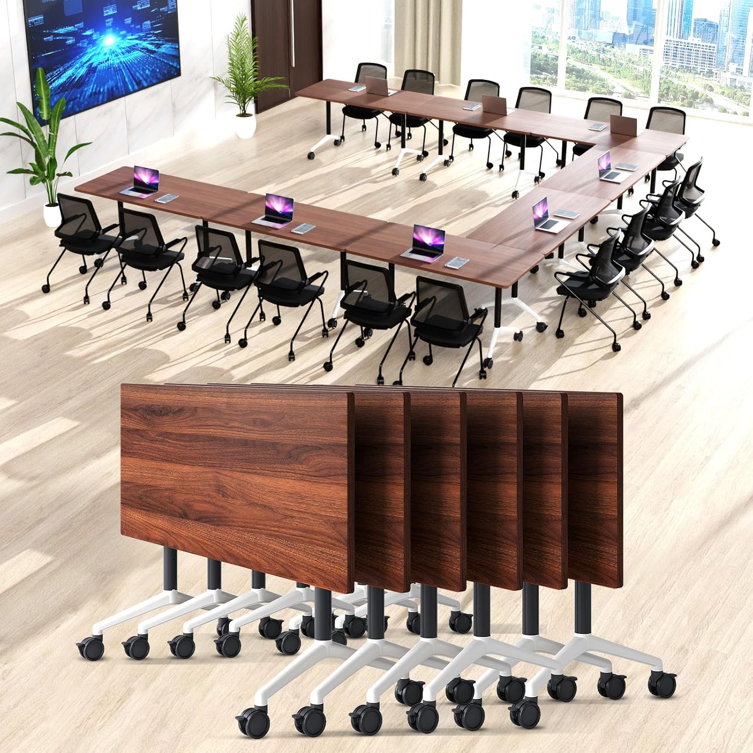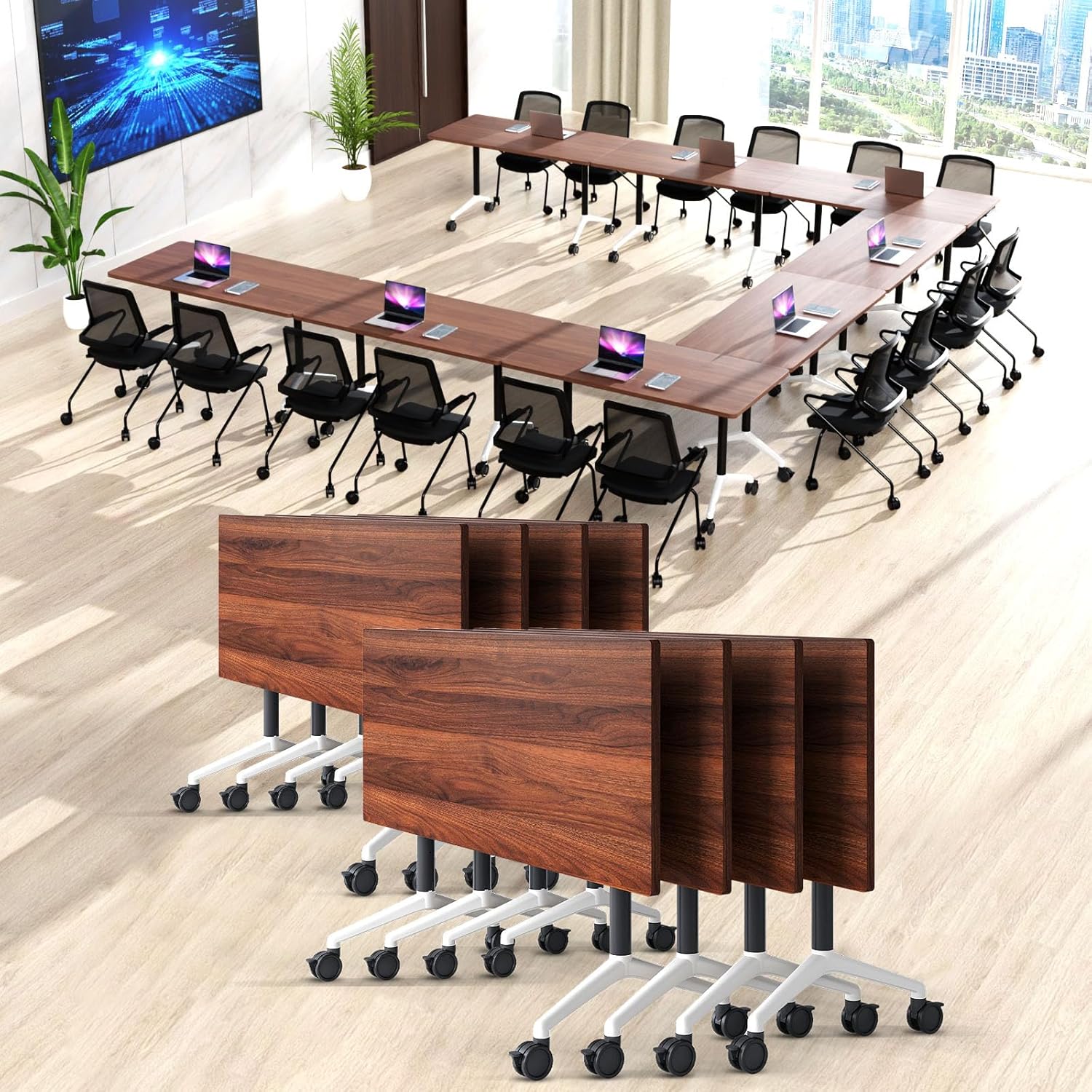 - 【One click folding saves space】The one click folding function of the conference room table can help you effectively solve the trouble of limited space use.When not in use,you can rotate the fold button to fold the conference table.This design not only saves you more space,but is also convenient for mobile and storage.