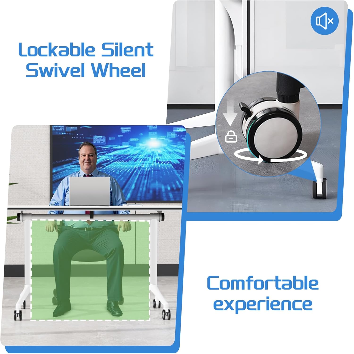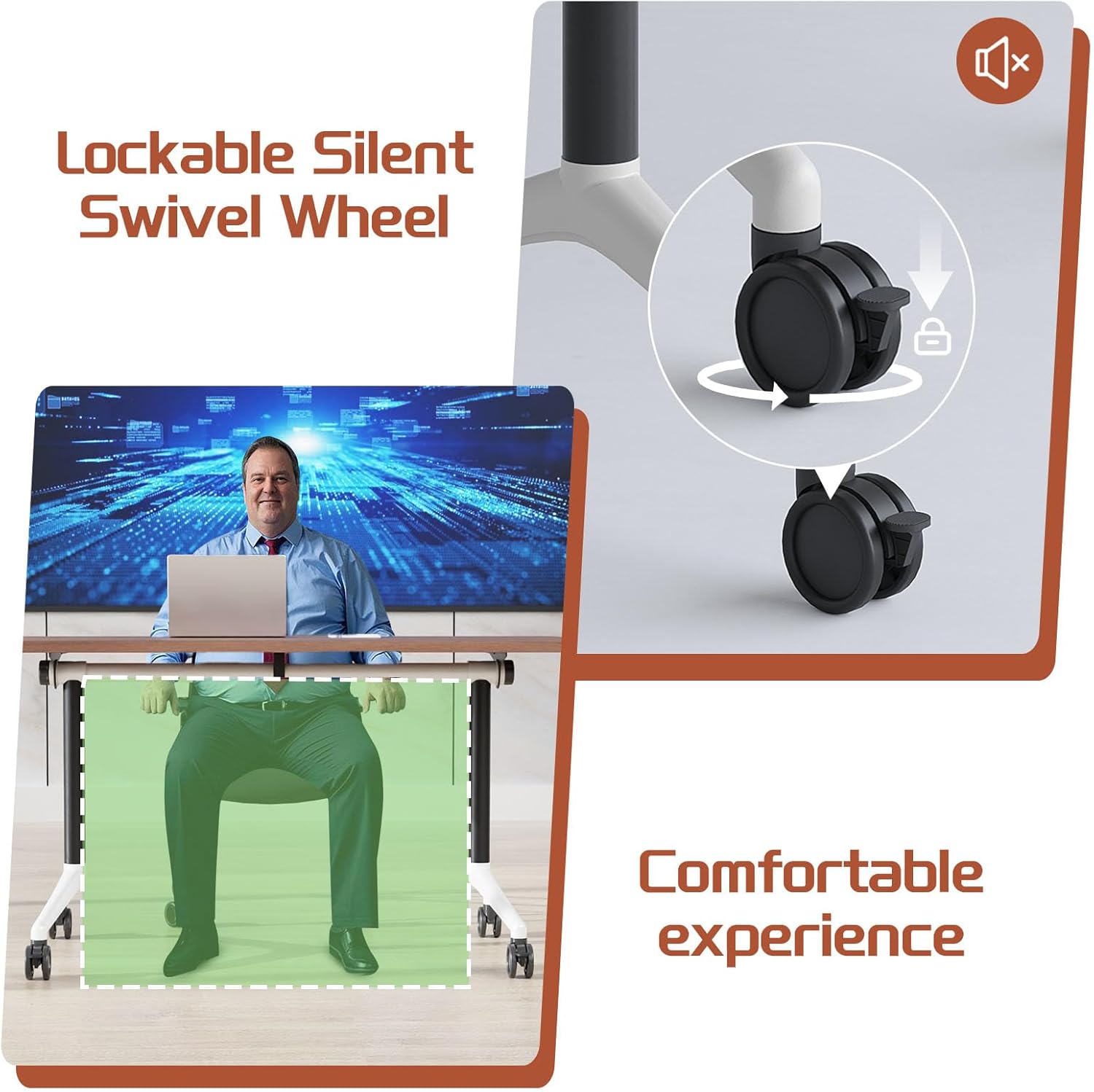 - 【Easily move lock】The folding conference table comes with 4 lockable silent universal wheels,allowing you to easily move conference table position without noise.After confirming the position,press the lock button to lock the conference table easily.