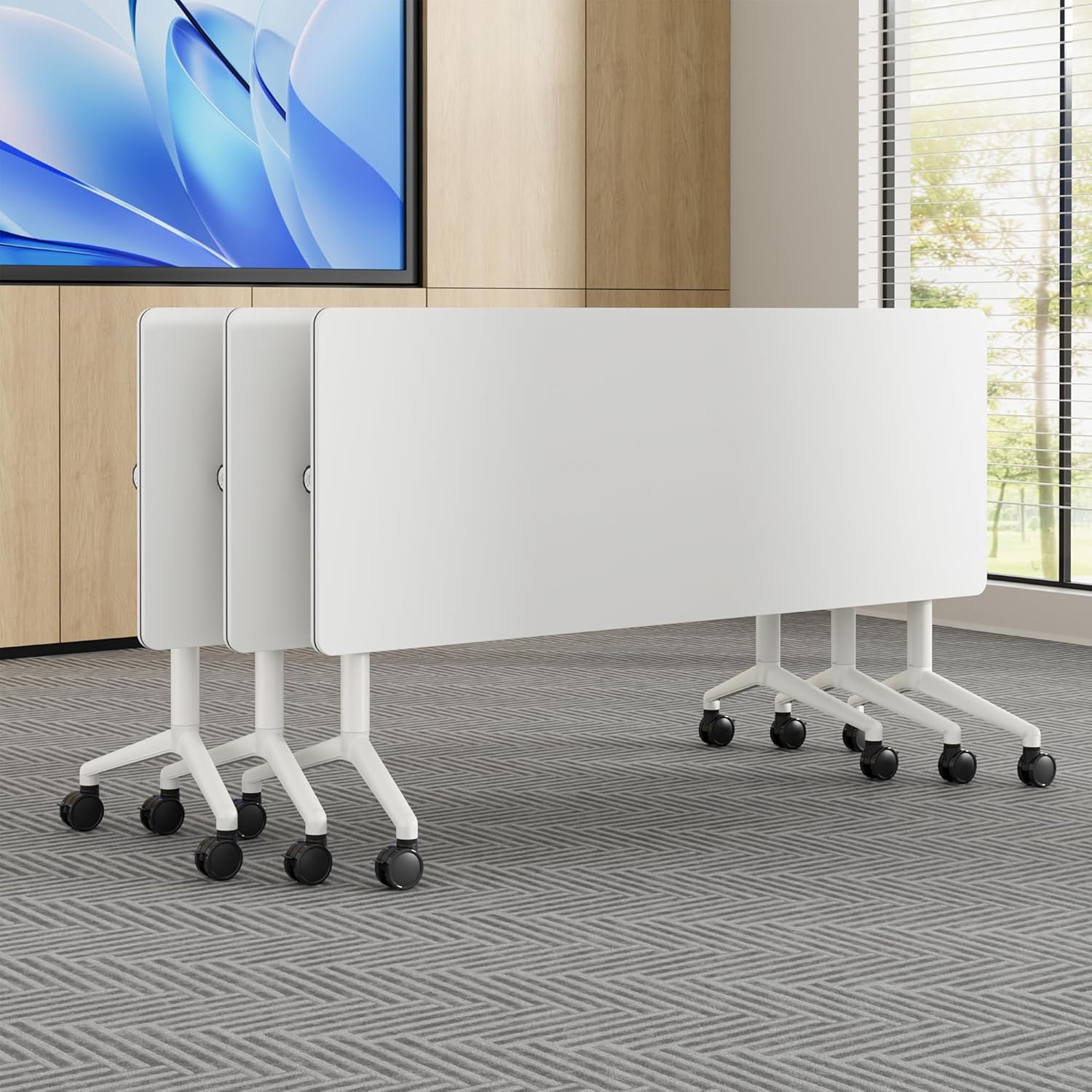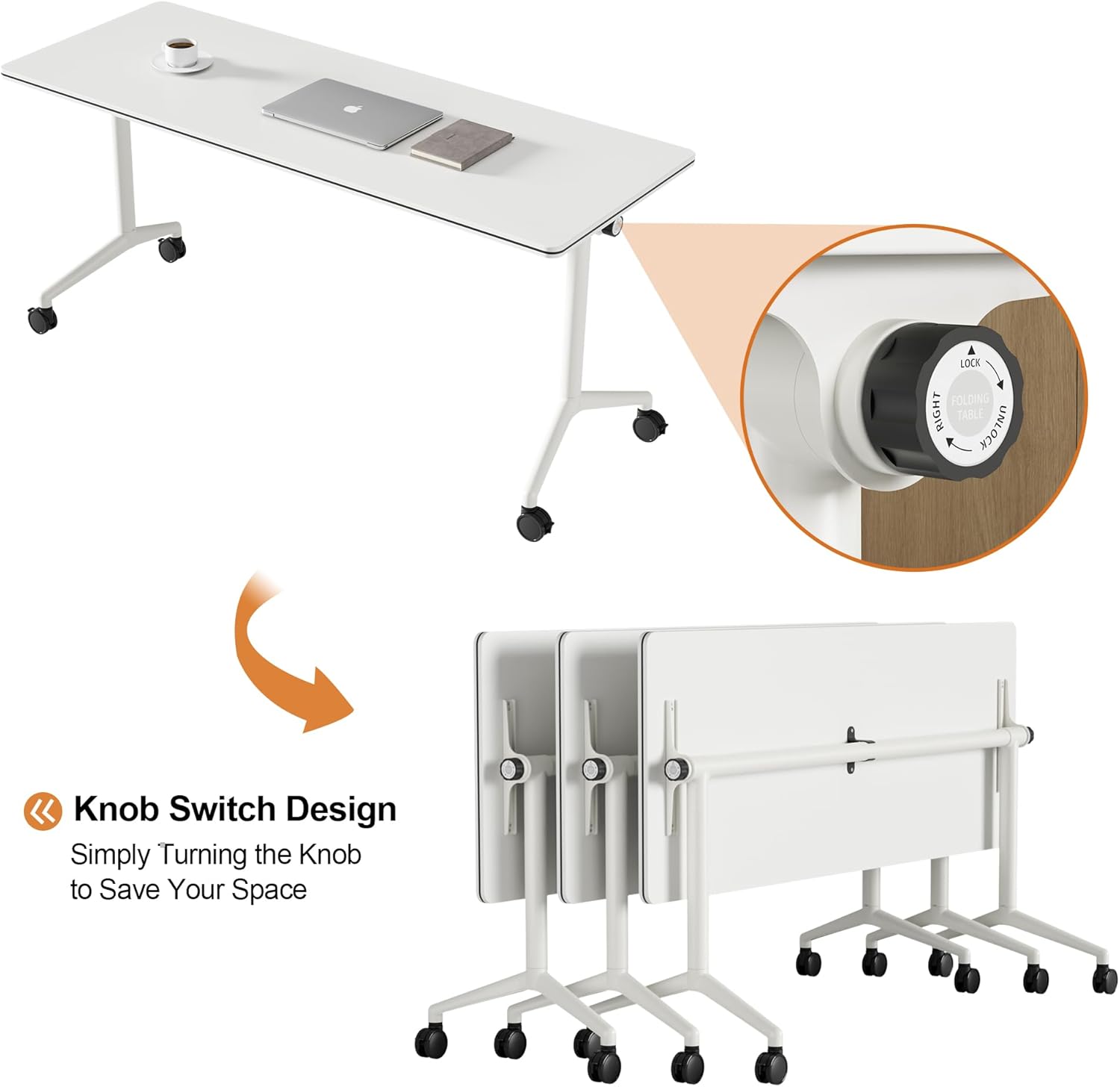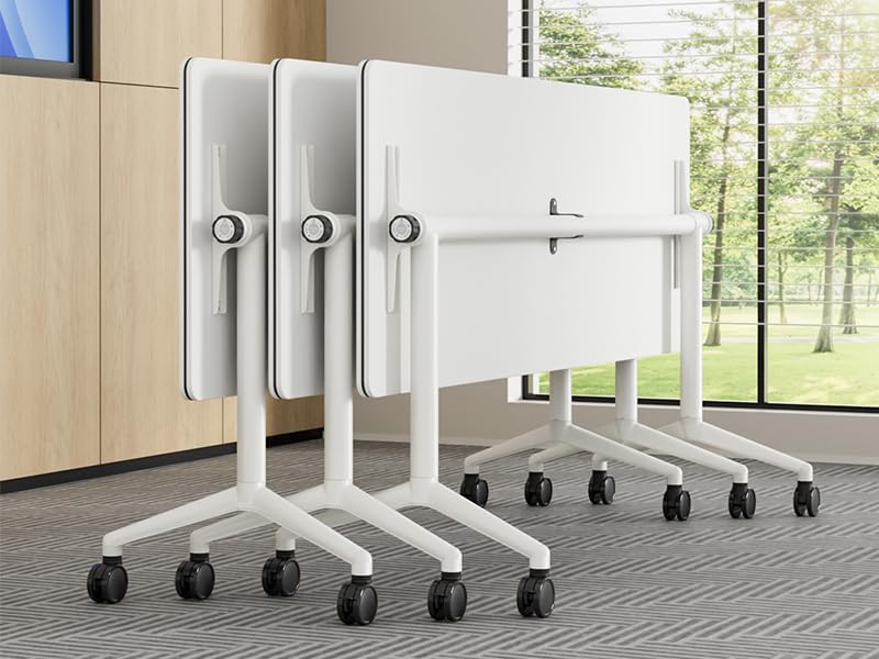 - Foldable & Movable: By simply turning the knob, the conference room table top can swiftly be flipped up, thereby optimizing storage space. And its mobility comes from four smooth wheels, thereby ensuring its ease of move. Meanwhile, excellent stability is brought by four lockable wheels.