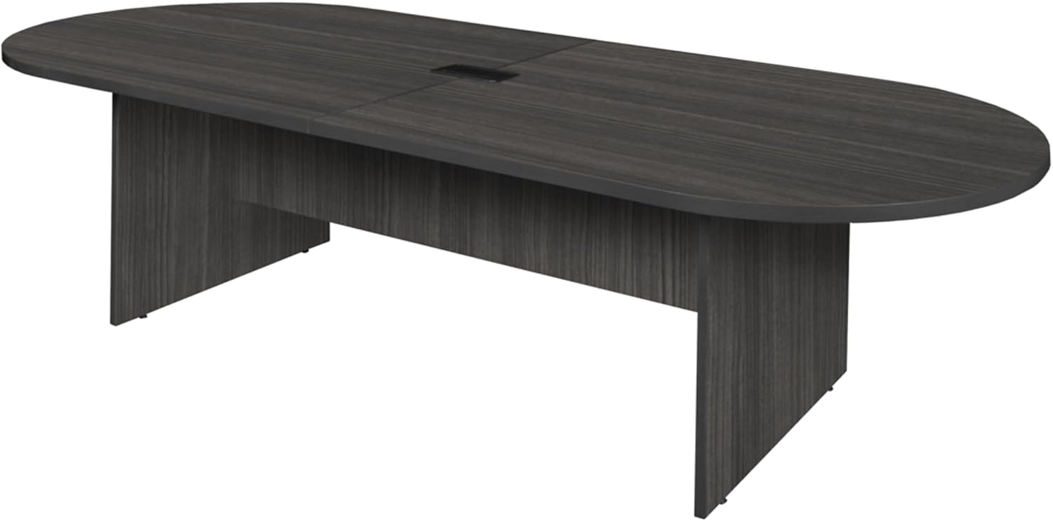 Make presentations memorable with Legacy's Conference collection! With tables that seat from two up to 24 people, there is a table for any size team. This 10-foot racetrack table comes in an stylish Ash Grey finish and seats 8 - 10 people. Adjustable glides on the bottom of the base keep the tabletop level and are easy to adjust. A Power and Data Port makes tabletop connectivity easy. The Power/Data port includes (2) USB 2. 0 ports, (2) USB charging ports, (2) AC 125V 60Hz outlets, (1) front/rear ethernet port, (1) front/rear phone port and has a black cover plate for a neat, clean look. The Legacy collection is constructed of a 1-inch thick thermal fused melamine laminate with a 3-millimeter commercial grade matching PVC edge. Laminates are scratch, stain and scald resistant. Legacy casegoods are backed by a 10-year limited manufacturer's .