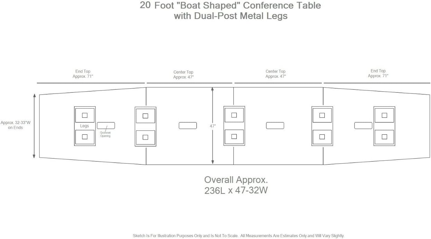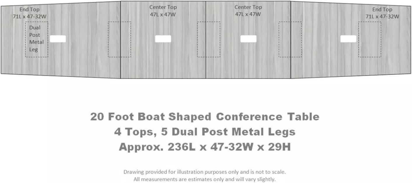 - Profiled Edge Design Boat Shaped Conference Wood 4 Tabletops, 5 Dual Post Metal Legs, Add Stiffness and Support the Weight Well.
