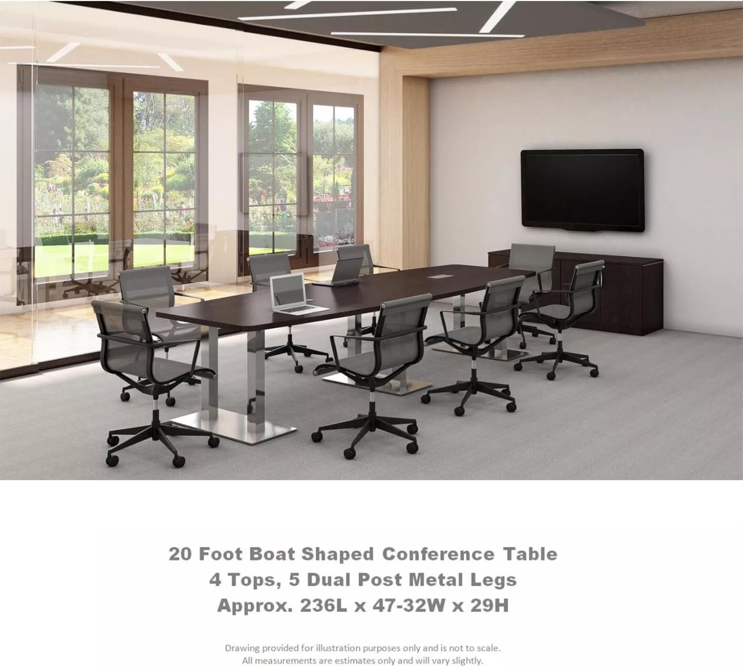 - New Premium Collection is Offered Modern 20 ft Boat Shaped Tabletop Laminate Espresso Finishes Conference Table with Dual Post Metal Legs.