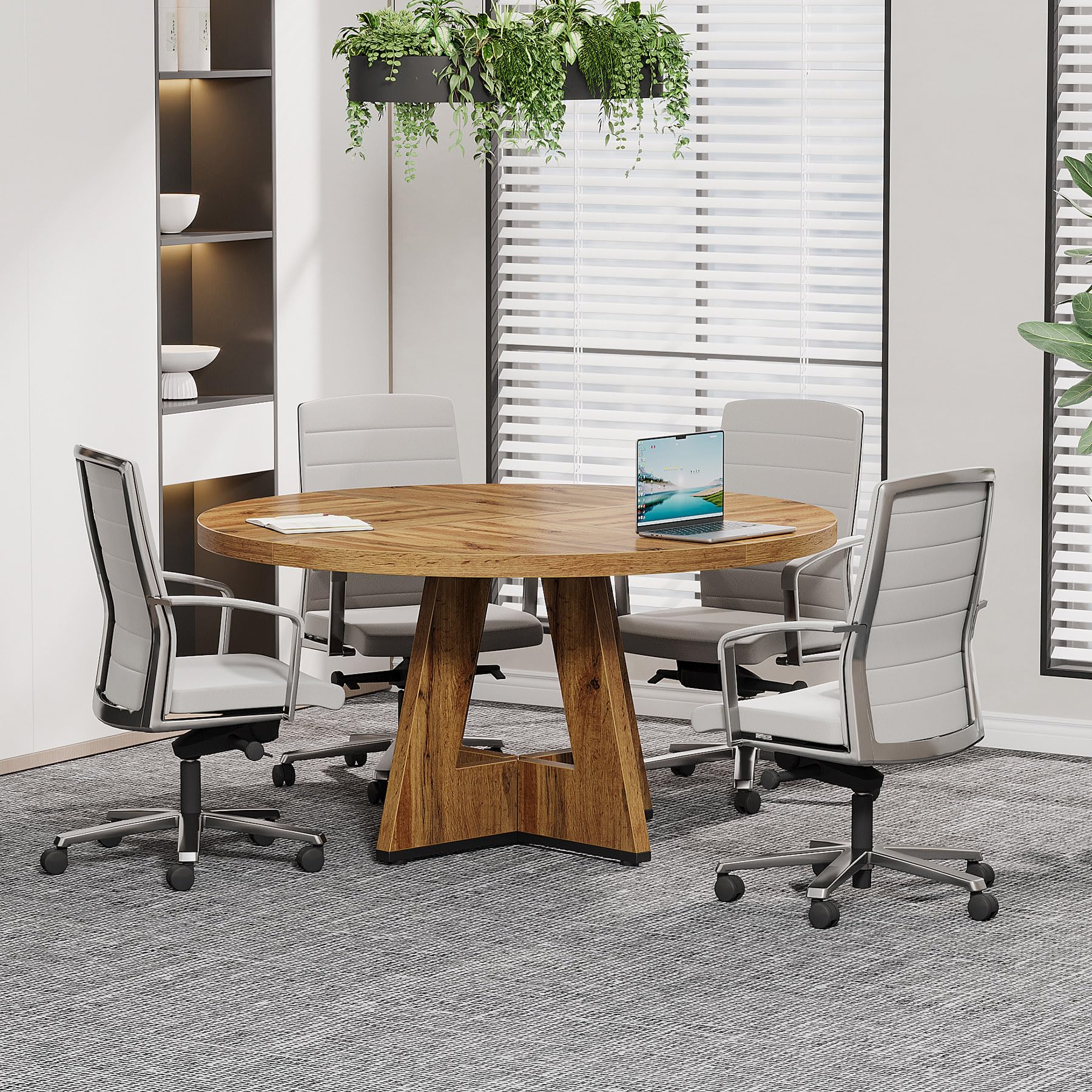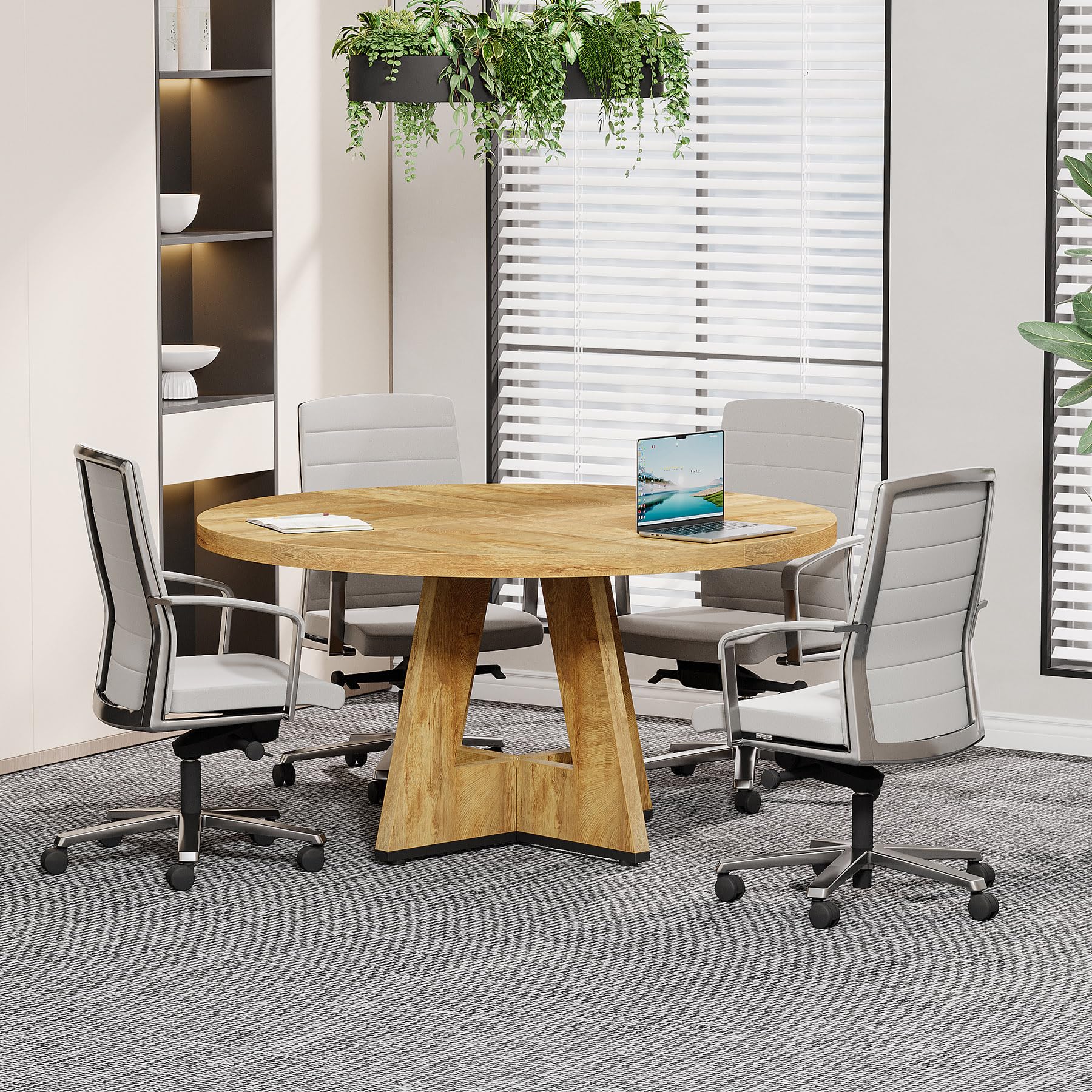 Tribesigns 47-Inch Round Conference Table Wooden Meeting Room Table