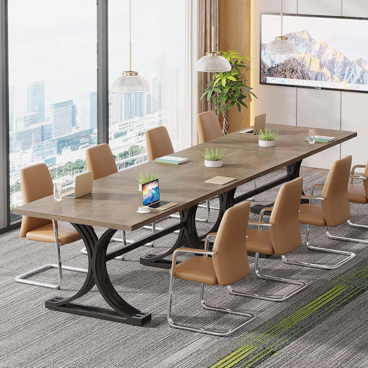 - Design with Distinction: The elegant and alluring half-moon-shaped black metal legs add an exquisite touch to the rectangular meeting table, capturing attention and reflecting refinement, elevating your conference room to new heights of sophistication.
