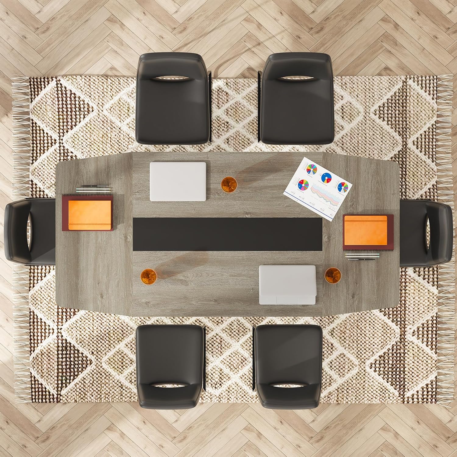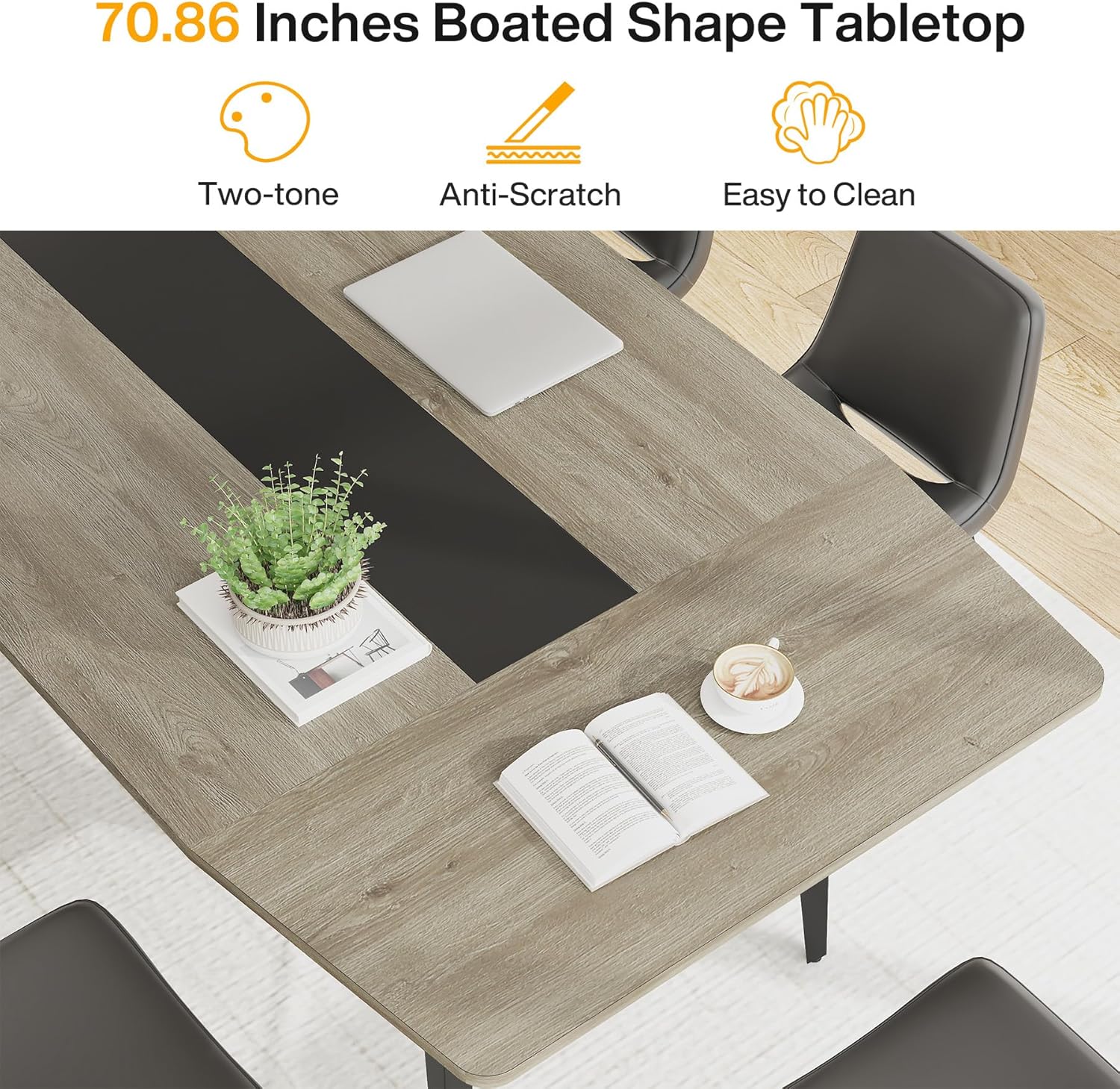 - 【Multi-purpose】Elevate the style and functionality of your office or dining room with this 6ft conference table. Its modern boat-shaped design adds a touch of sophistication to any room, while its versatile construction allows it to seamlessly transition from a conference table to a chic dining table. Whether you're hosting a team meeting or enjoying a family dinner, this table is the perfect choice for those who demand style and flexibility in their furnishings.