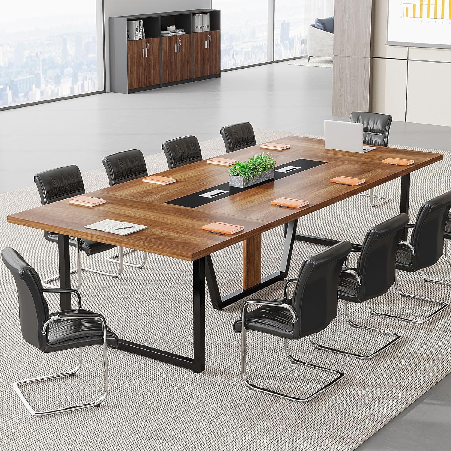 - [BUSINESS STYLE OFFICE FURNITURE]: Classic black and light walnut combination shows a sleek business style, which will definitely match your office conference room style. Because of the simple long and wide design, this business furniture is also a good choice for a long office table, meeting table, podcast table, seminar table, boardroom table, training table and so on.
