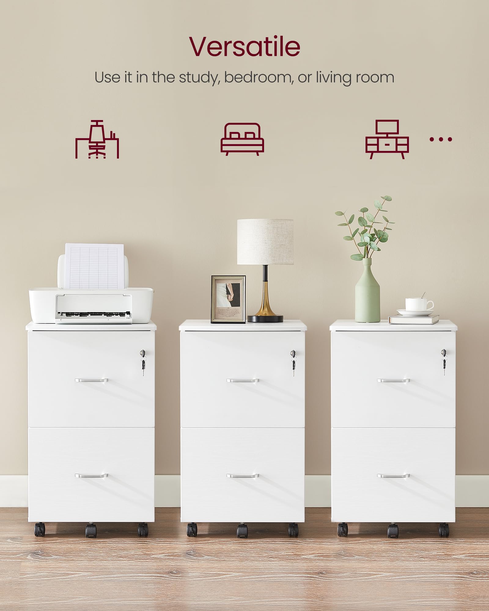VASAGLE 2-Drawer Rolling File Cabinet, Snow White