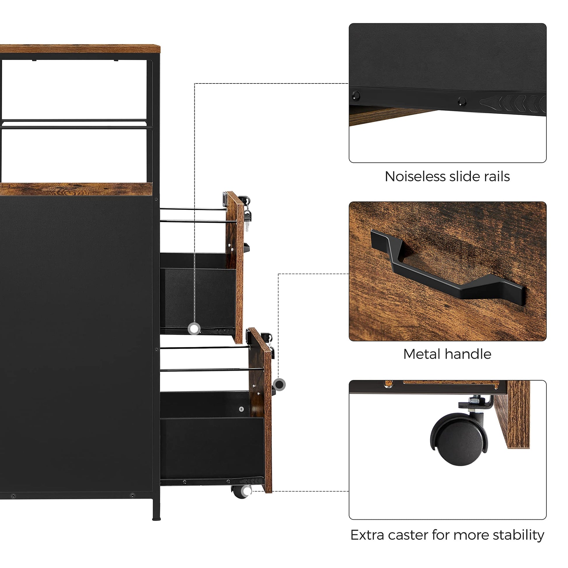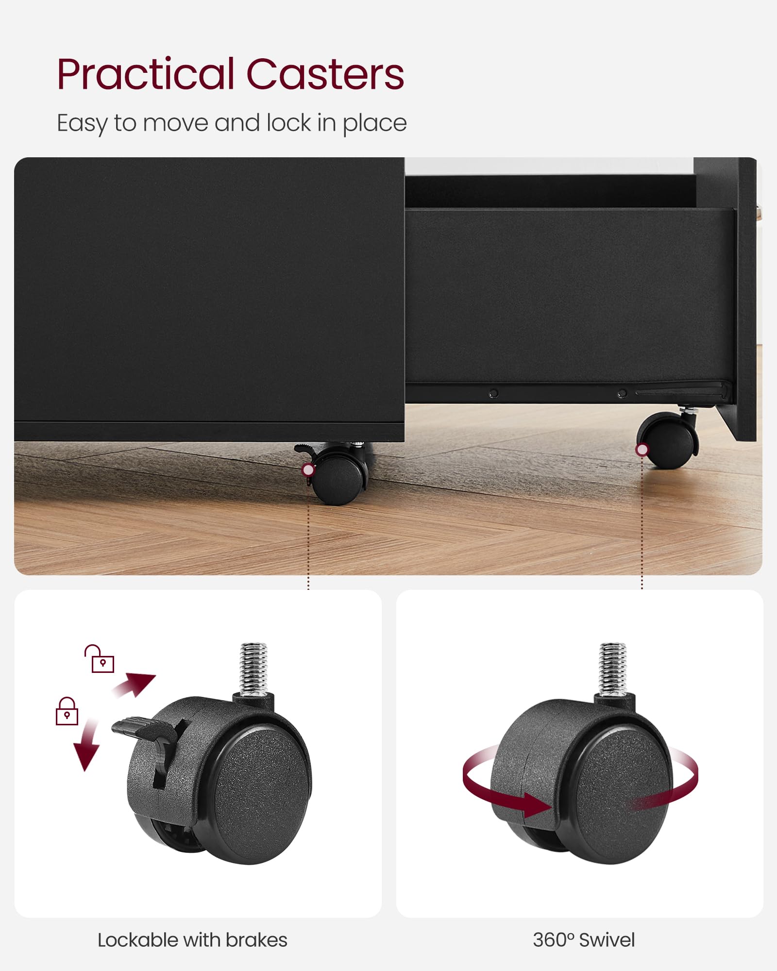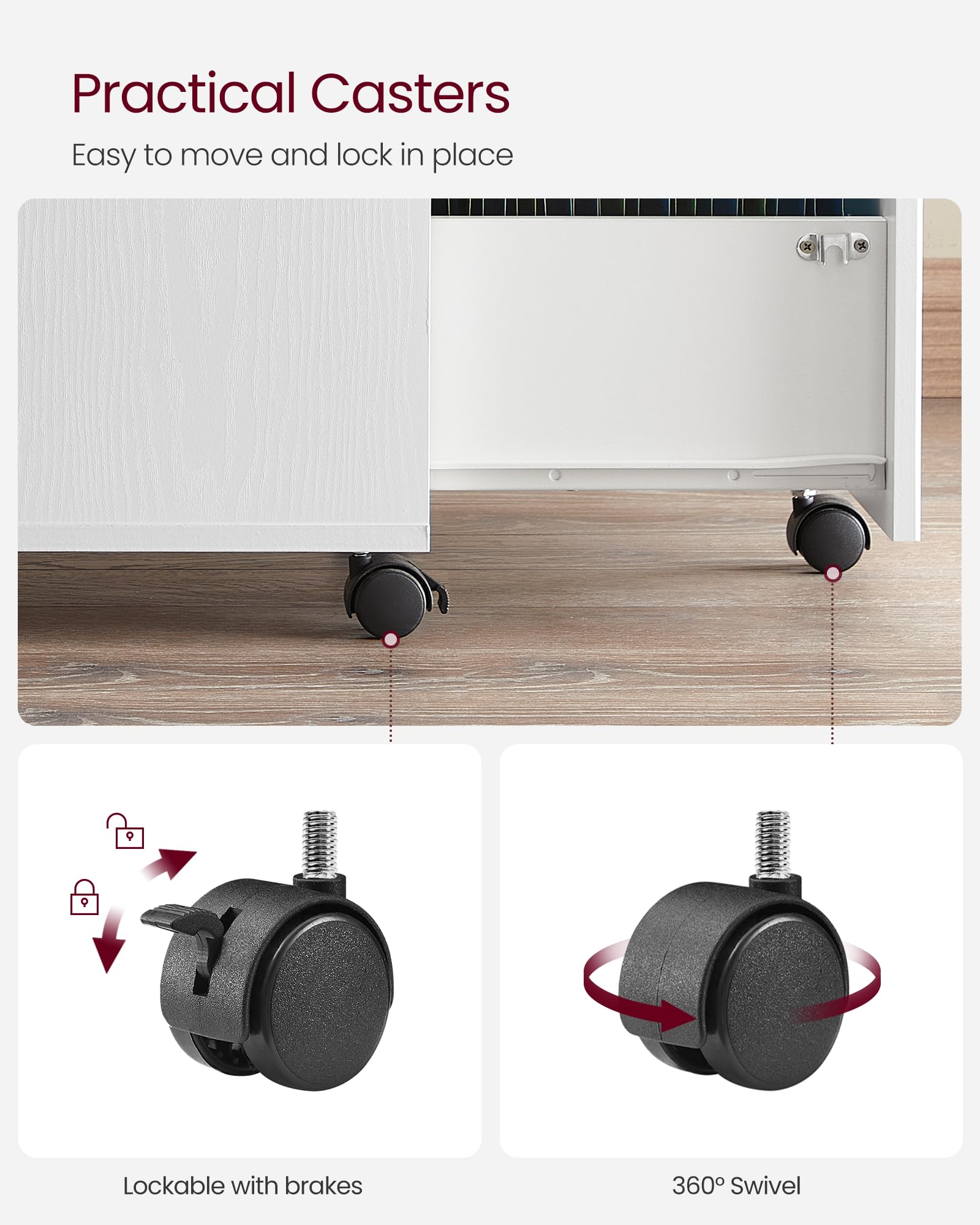 - 【LOCKABLE, SWIVEL CASTERS】Five 360° swivel casters allow you to move this filing cabinet around with ease. The 2 front casters are lockable to keep the cabinet in place when stationary and the fifth wheel on the bottom drawer adds to overall stability