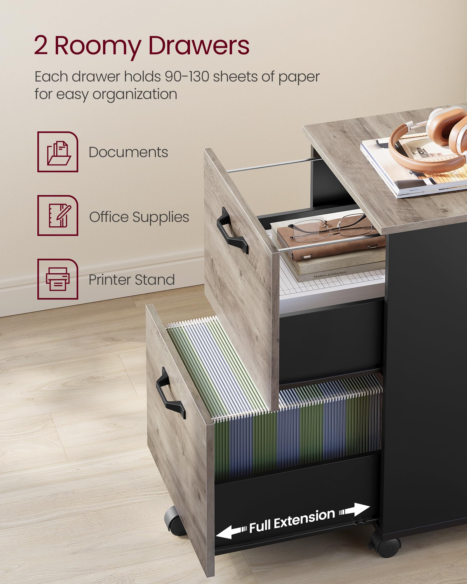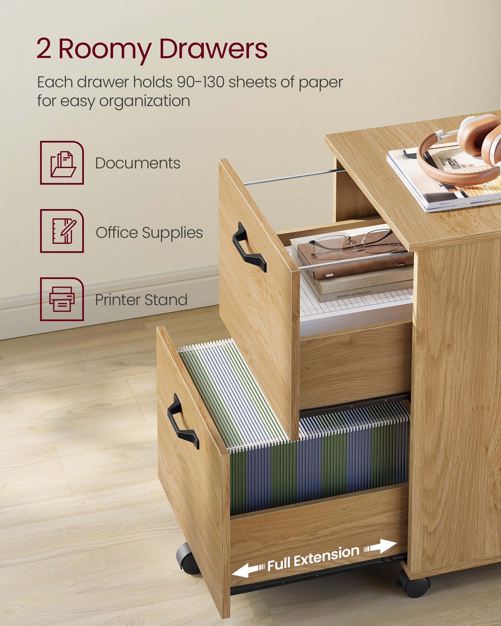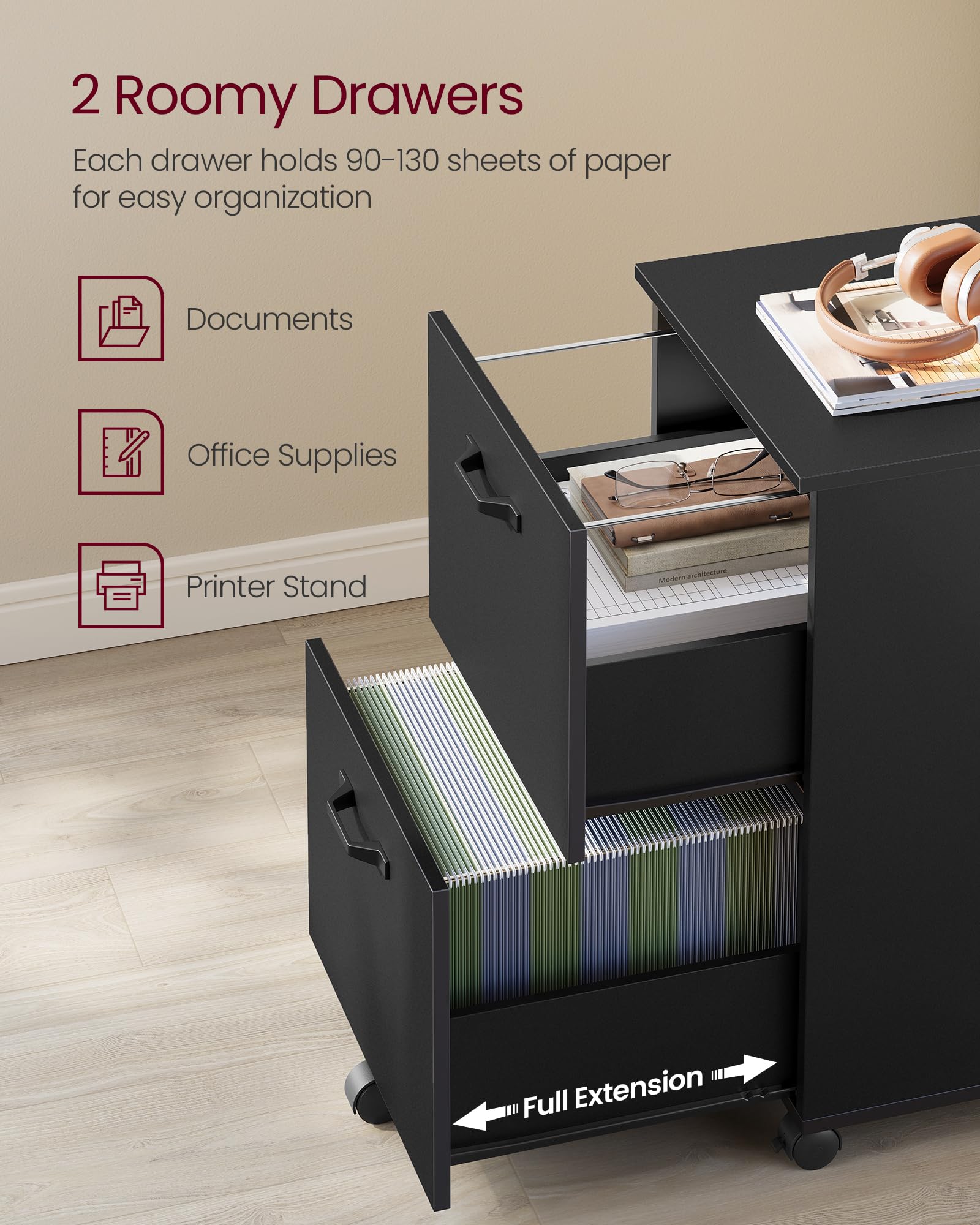 - 【PLENTY OF STORAGE】With 2 spacious drawers, this file cabinet can neatly store 90-130 sheets of documents in each, meeting your daily filing needs. Adjustable hanging rails inside the drawers fit both A4 and letter size folders
