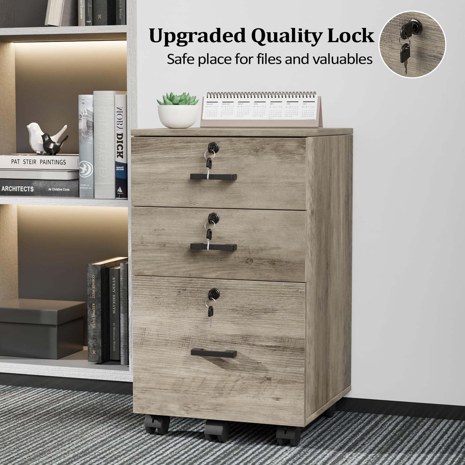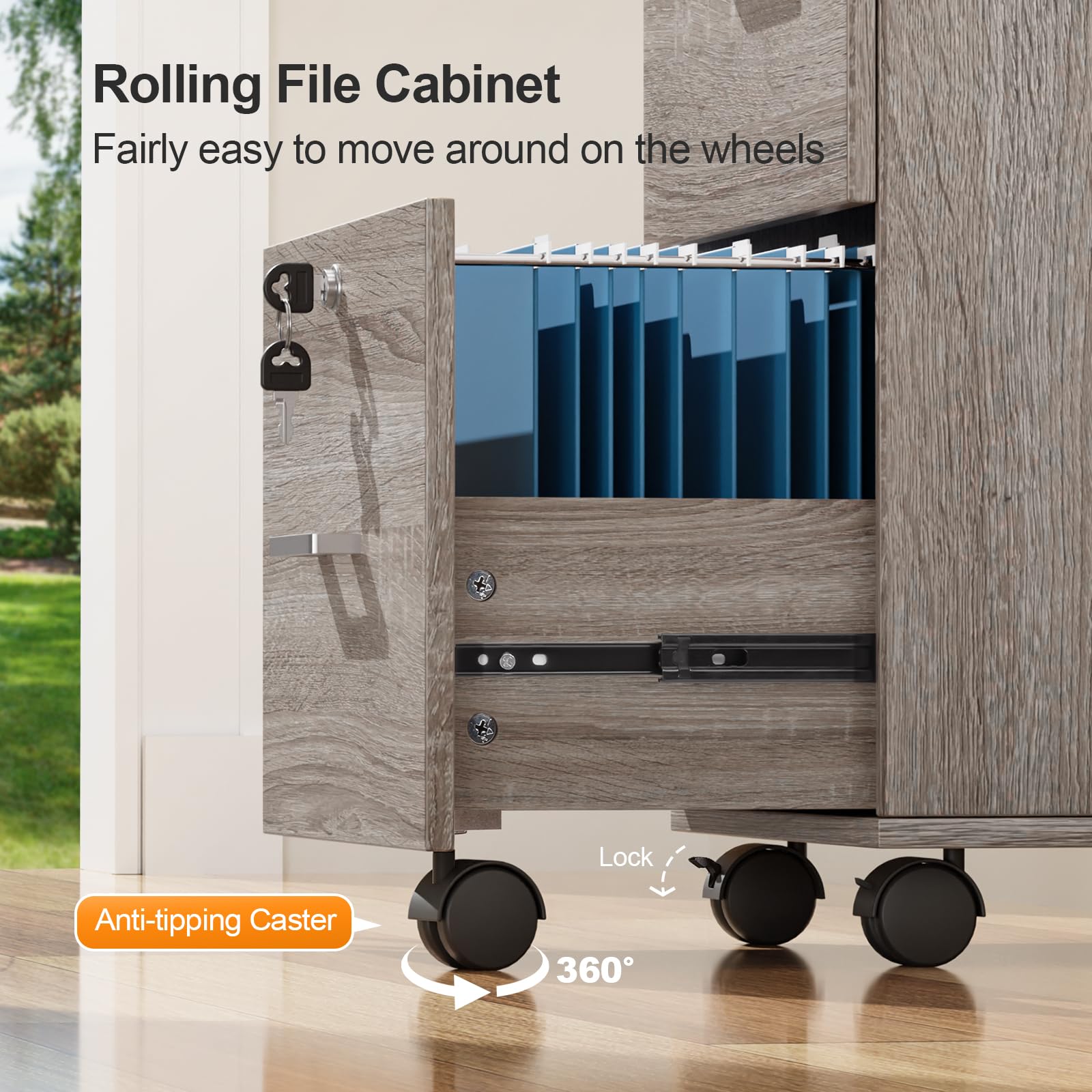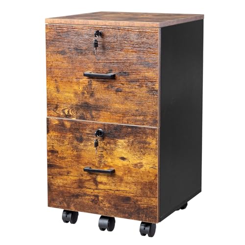 VINGLI 2 Drawer File Cabinet with Lock, Wood Rustic Gray Filing Cabinet