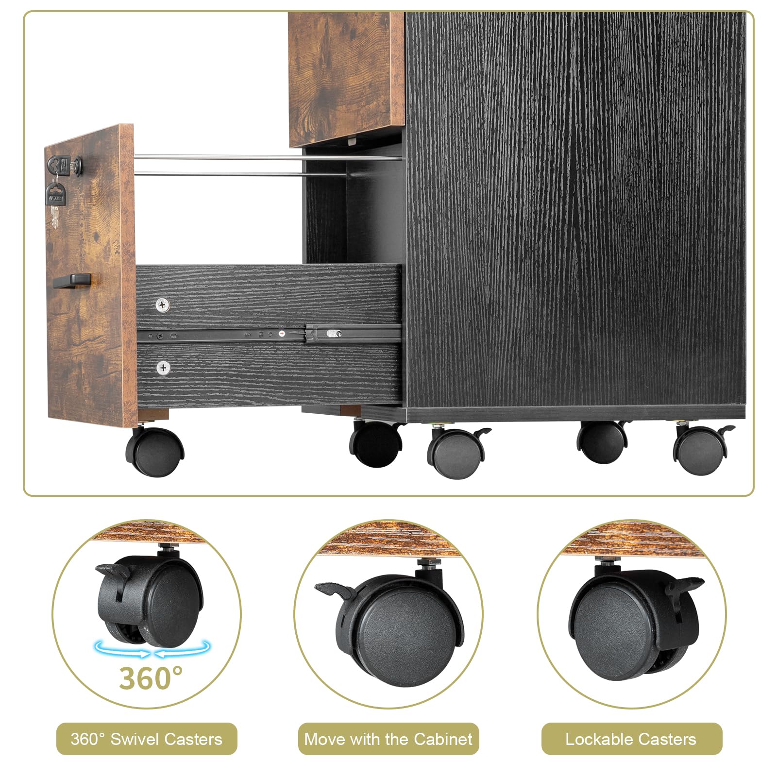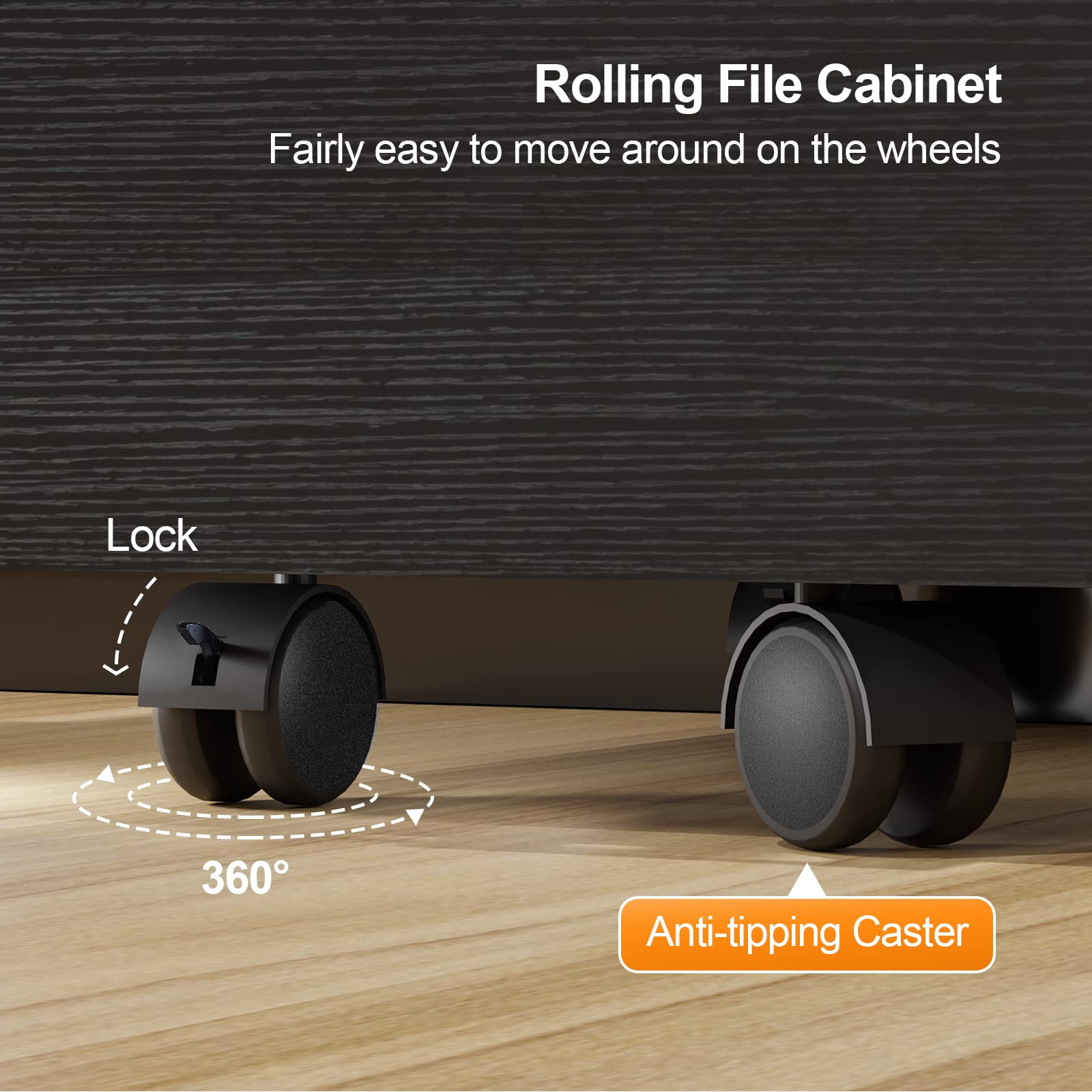 - 【Stable and Movable】With five wheels with brakes, including one in the center for added stability, you can move this mobile file cabinet anywhere you like without worrying about it tipping over